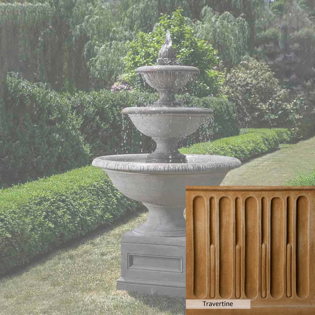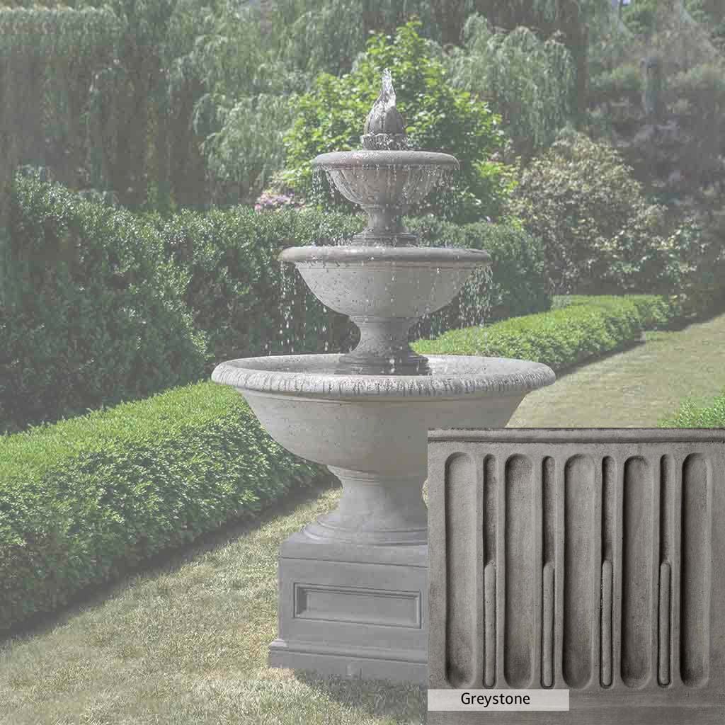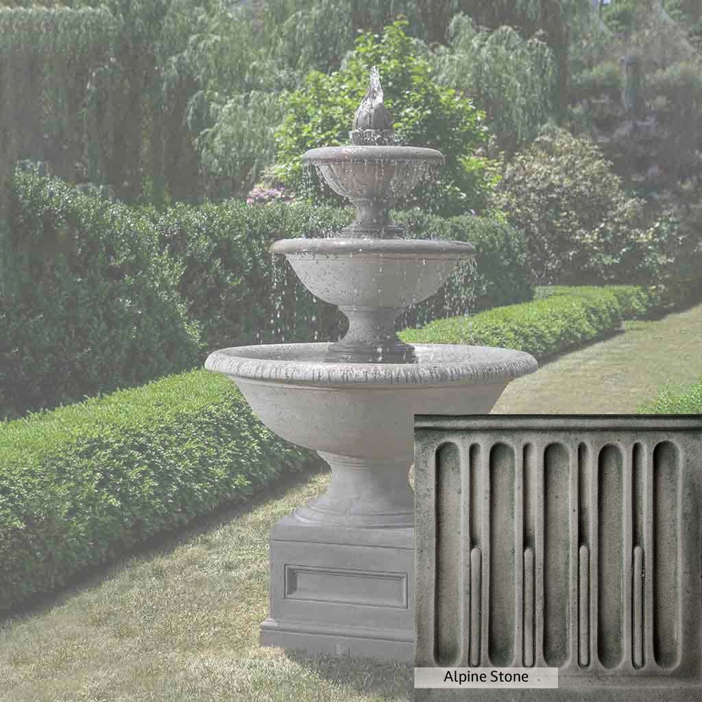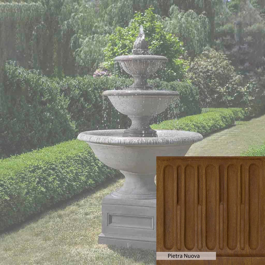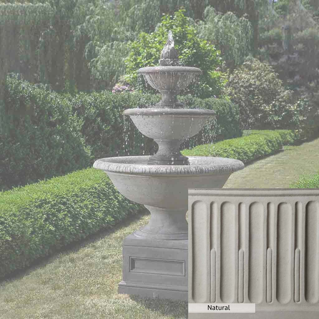 The Monteros Fountain is handcrafted by skilled artisans in the USA. The Campania team applies the unique patina with experienced hands, making each piece special. This fountain is featured in the color. Campania International's exclusive cast stone blend is expertly molded to create each piece in the construction of this fountain. Due to the materials used and manufacturing processes, as well as variations in photography conditions, natural differences may occur in size, weight, and color. The actual color may vary from the photo.