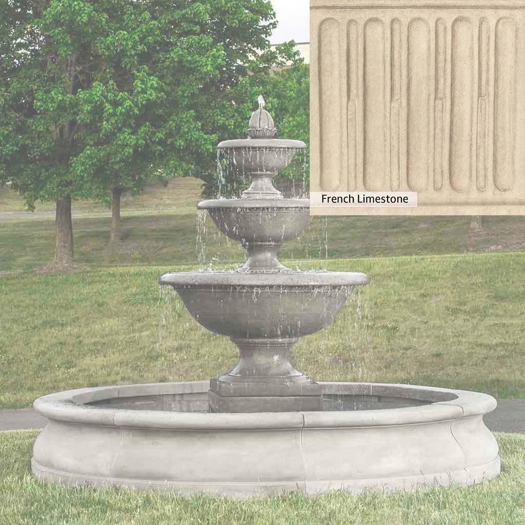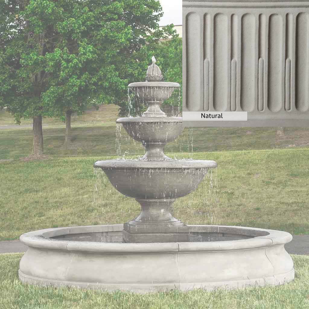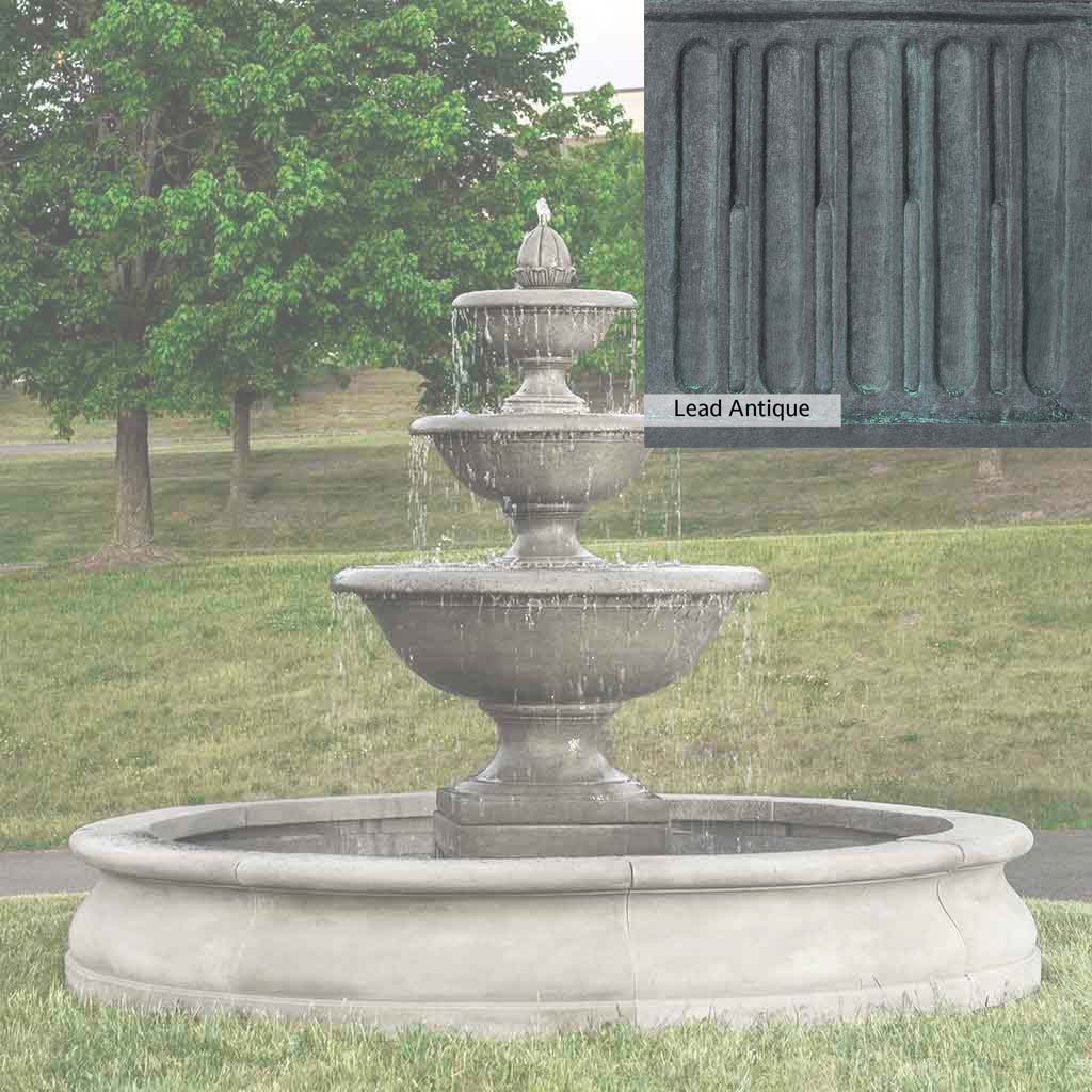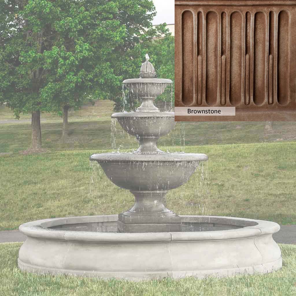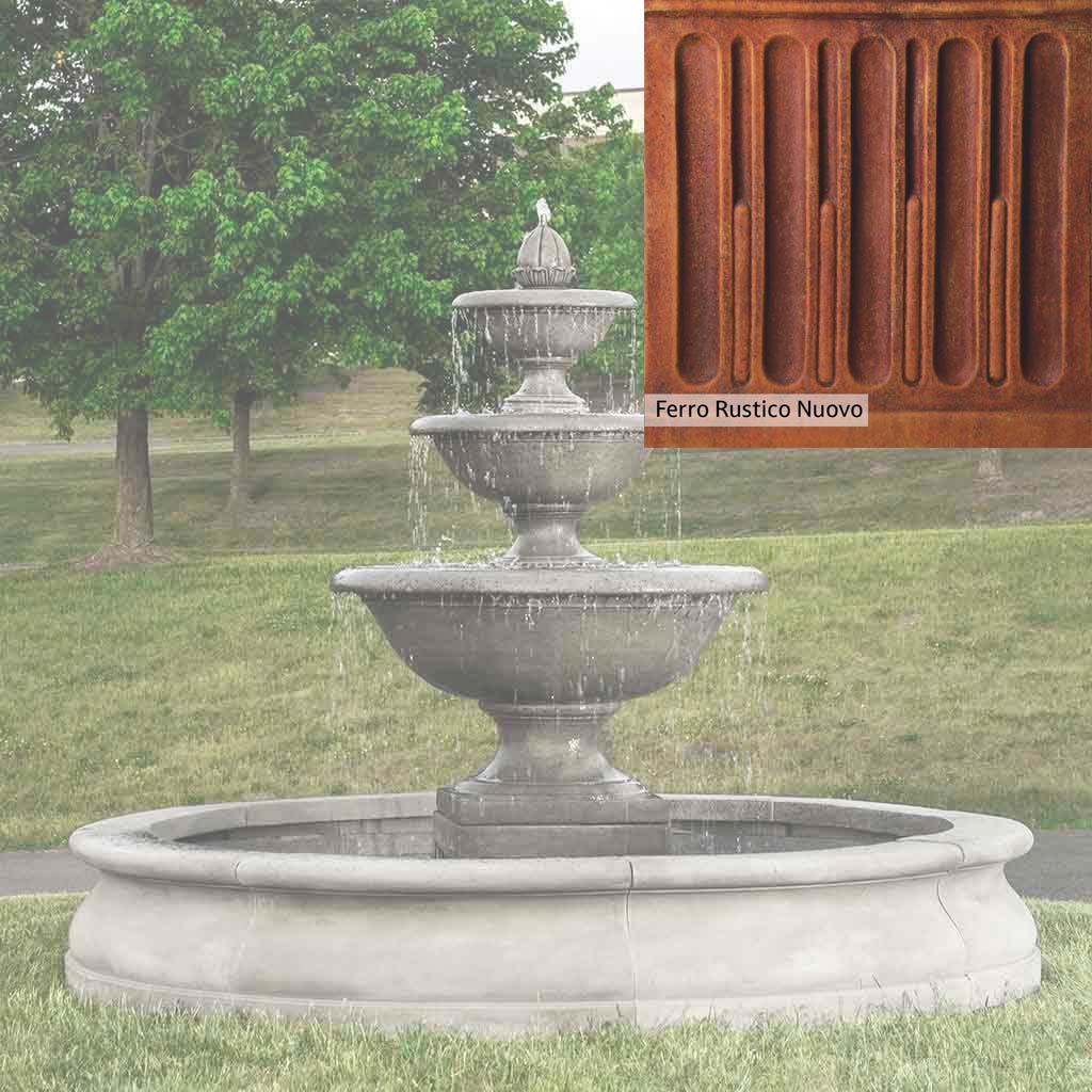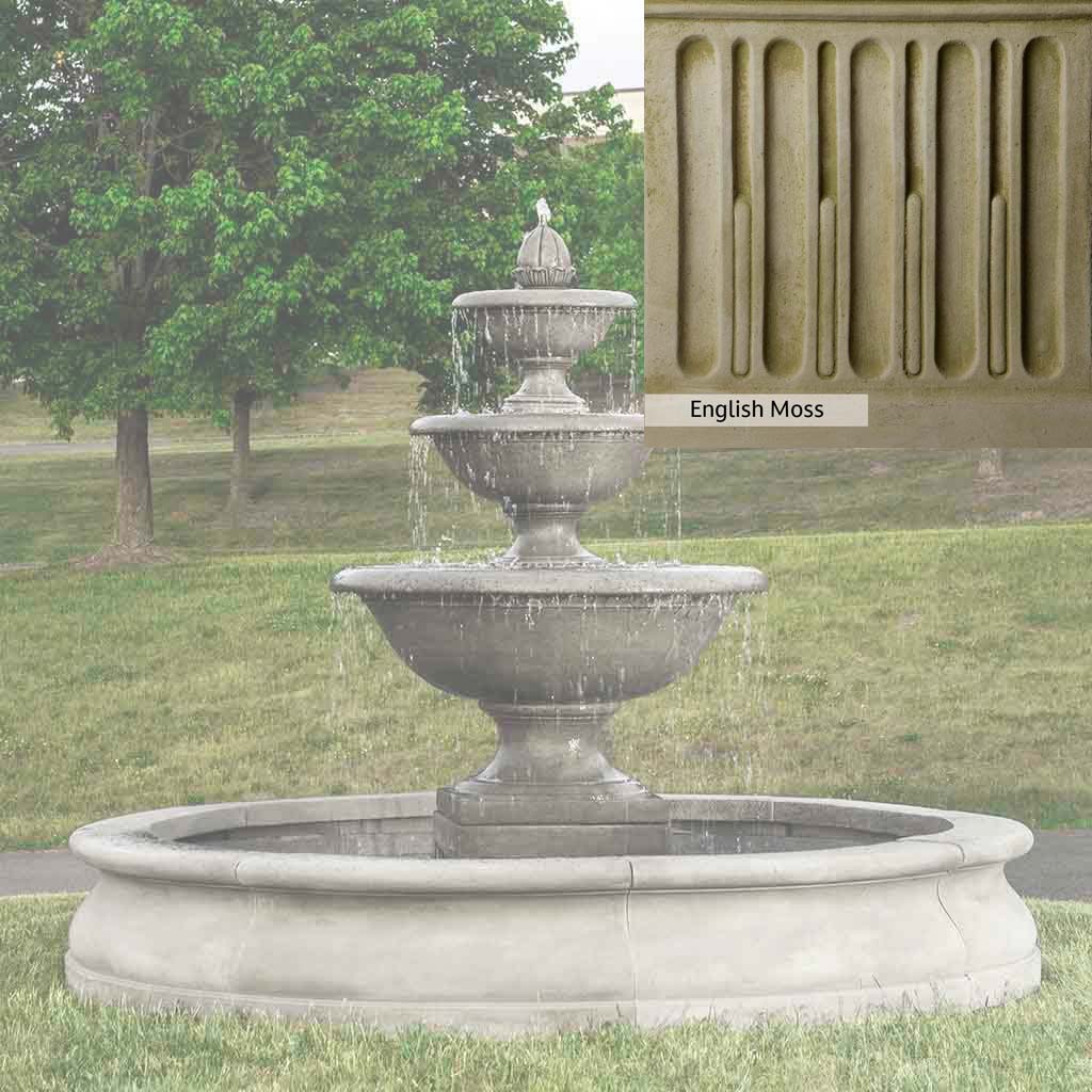 The Monteros Fountain in Basin is handcrafted by skilled artisans in the USA. The Campania team applies a unique patina with experienced hands, making each piece special. This fountain is featured in the color. Campania International's exclusive cast stone blend is expertly molded to create each piece in the construction of this fountain. Due to the materials used and manufacturing processes, as well as variations in photography conditions, natural differences may occur in size, weight, and color. The actual color may vary from the photo.