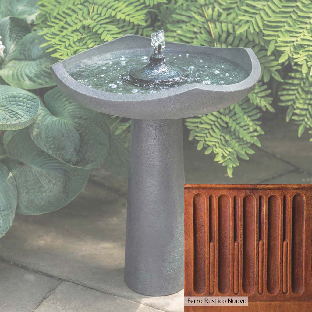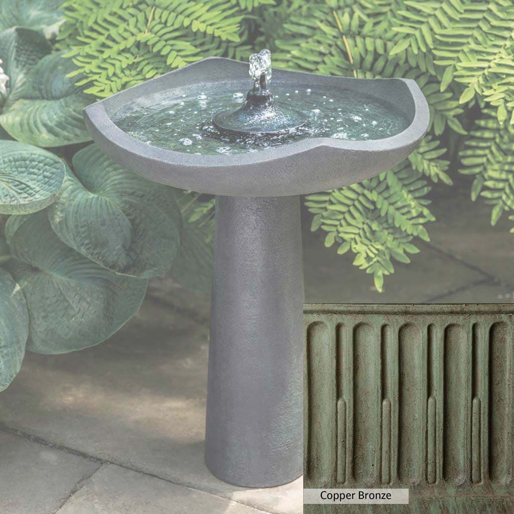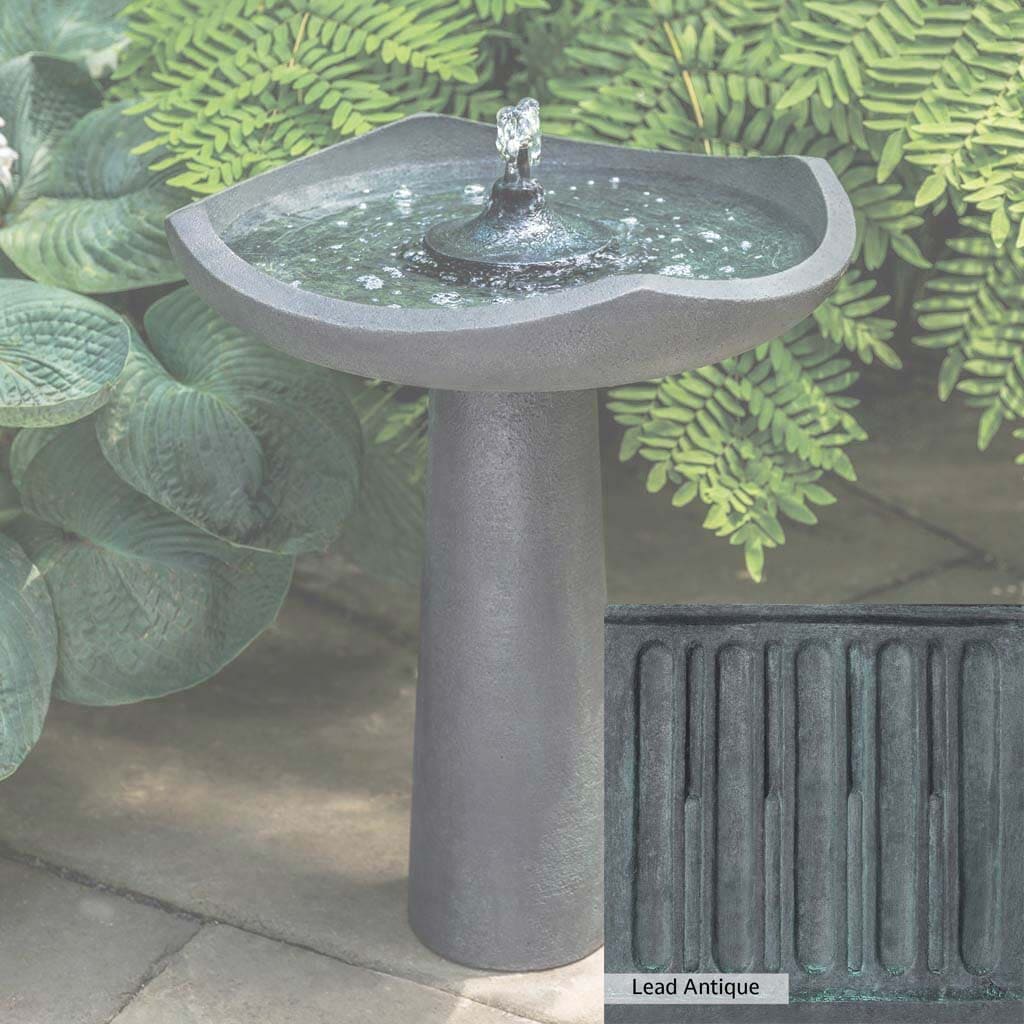 The Oslo Medium Fountain is handcrafted by skilled artisans in the USA. The Campania team applies a unique patina with experienced hands, making each piece special. This fountain is featured in the Lead Antique color. Campania International's exclusive cast stone blend is expertly molded to create each piece in the construction of this fountain. Due to the materials used and manufacturing processes, as well as variations in photography conditions, natural differences may occur in size, weight, and color. The actual color may vary from the photo.