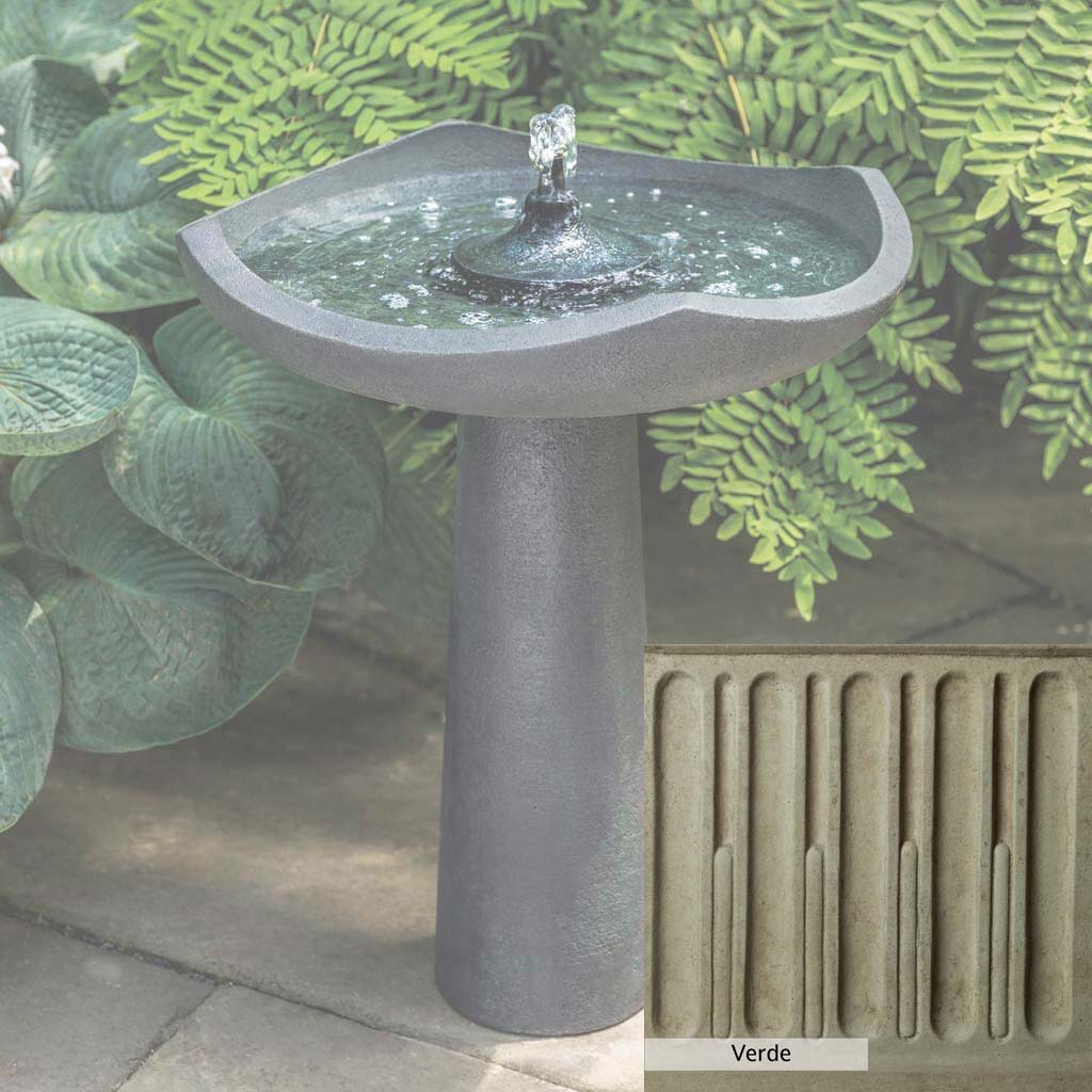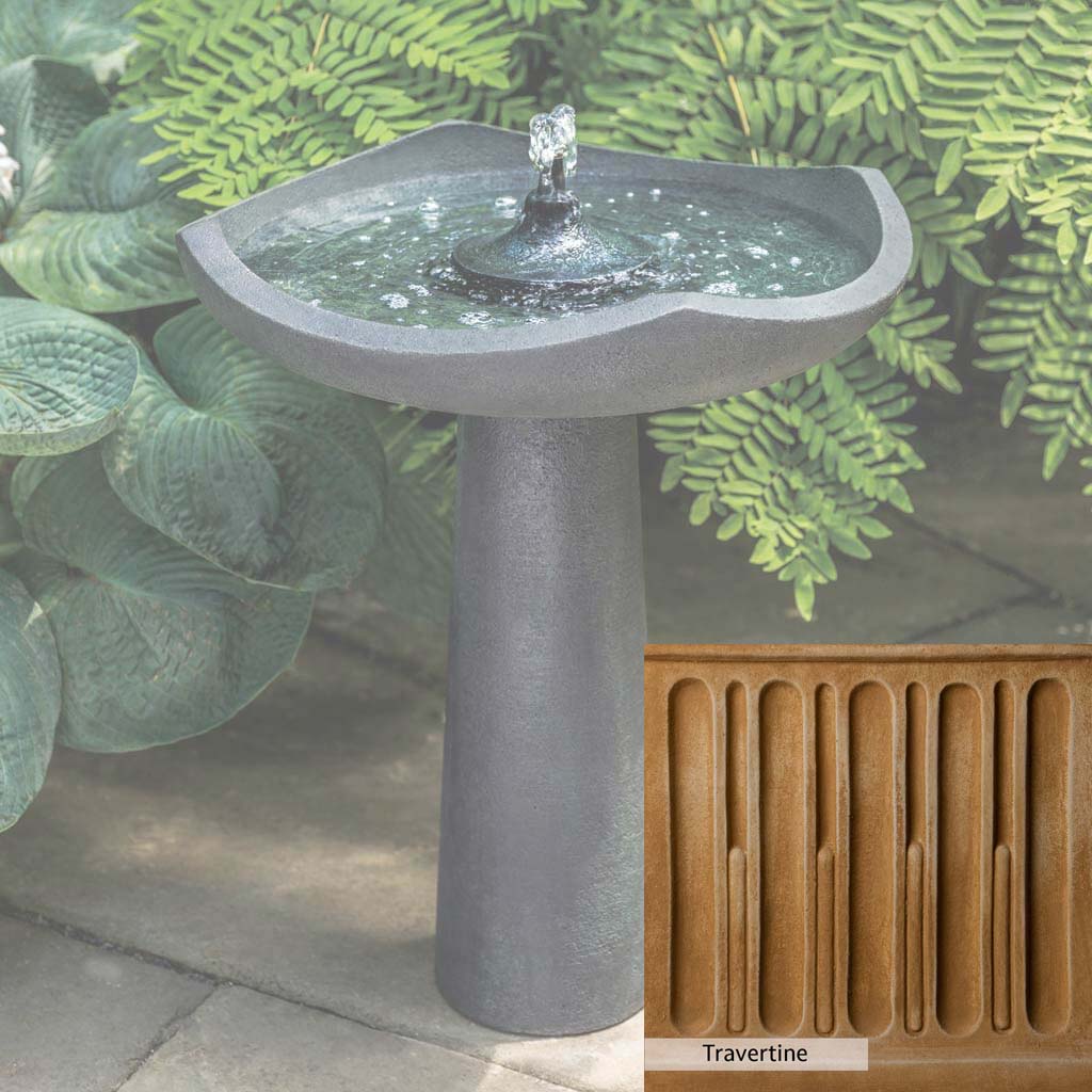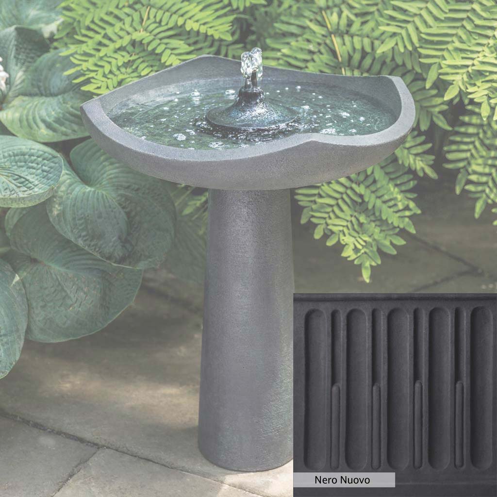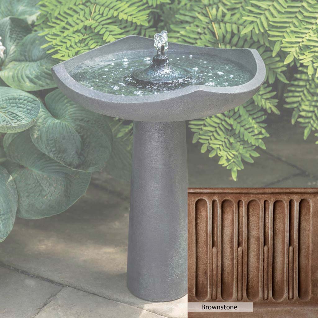 The Oslo Medium Fountain is handcrafted by skilled artisans in the USA. The Campania team applies a unique patina with experienced hands, making each piece special. This fountain is featured in the Lead Antique color. Campania International's exclusive cast stone blend is expertly molded to create each piece in the construction of this fountain. Due to the materials used and manufacturing processes, as well as variations in photography conditions, natural differences may occur in size, weight, and color. The actual color may vary from the photo.