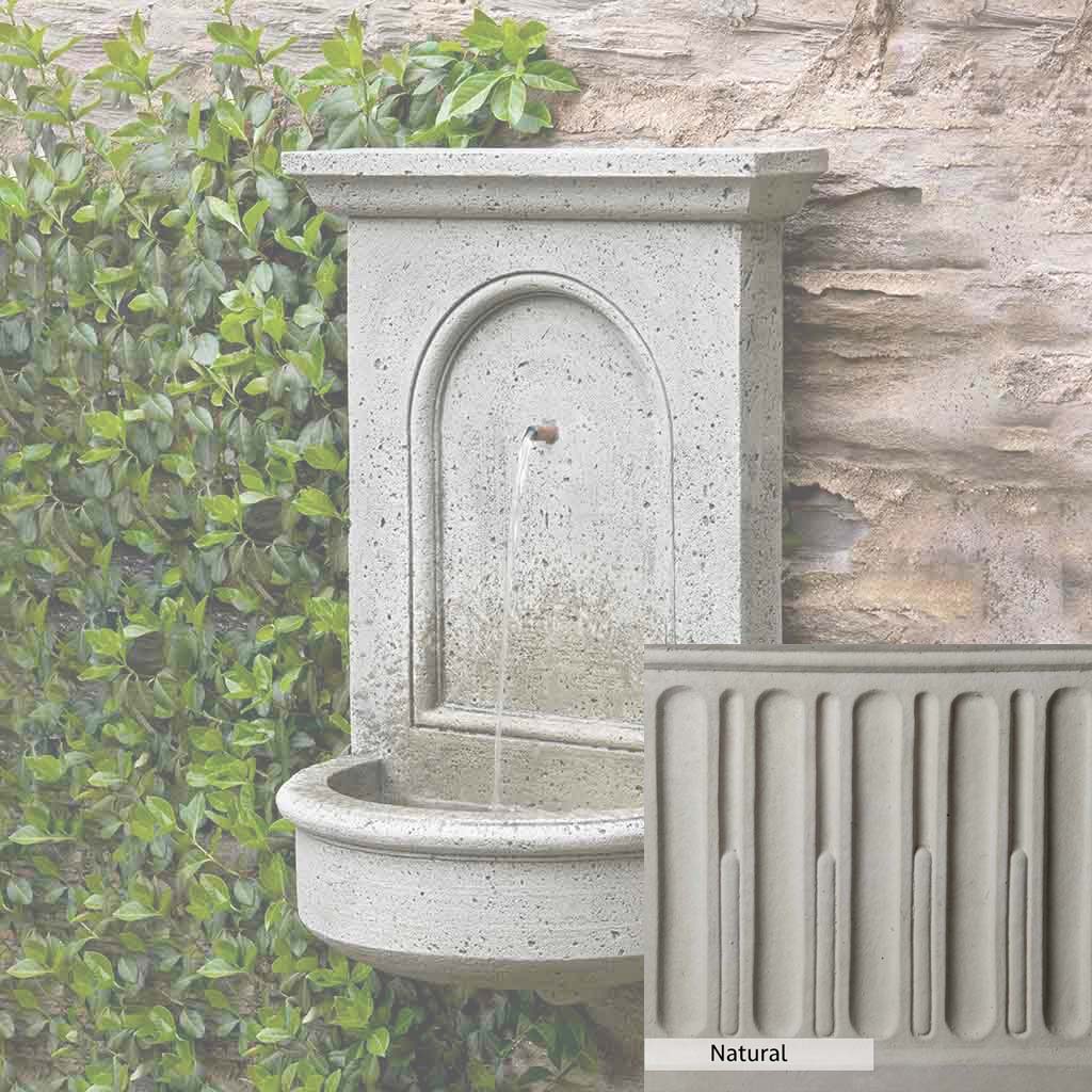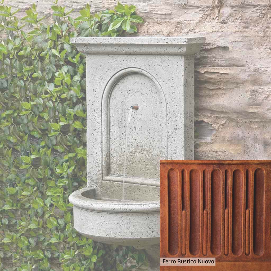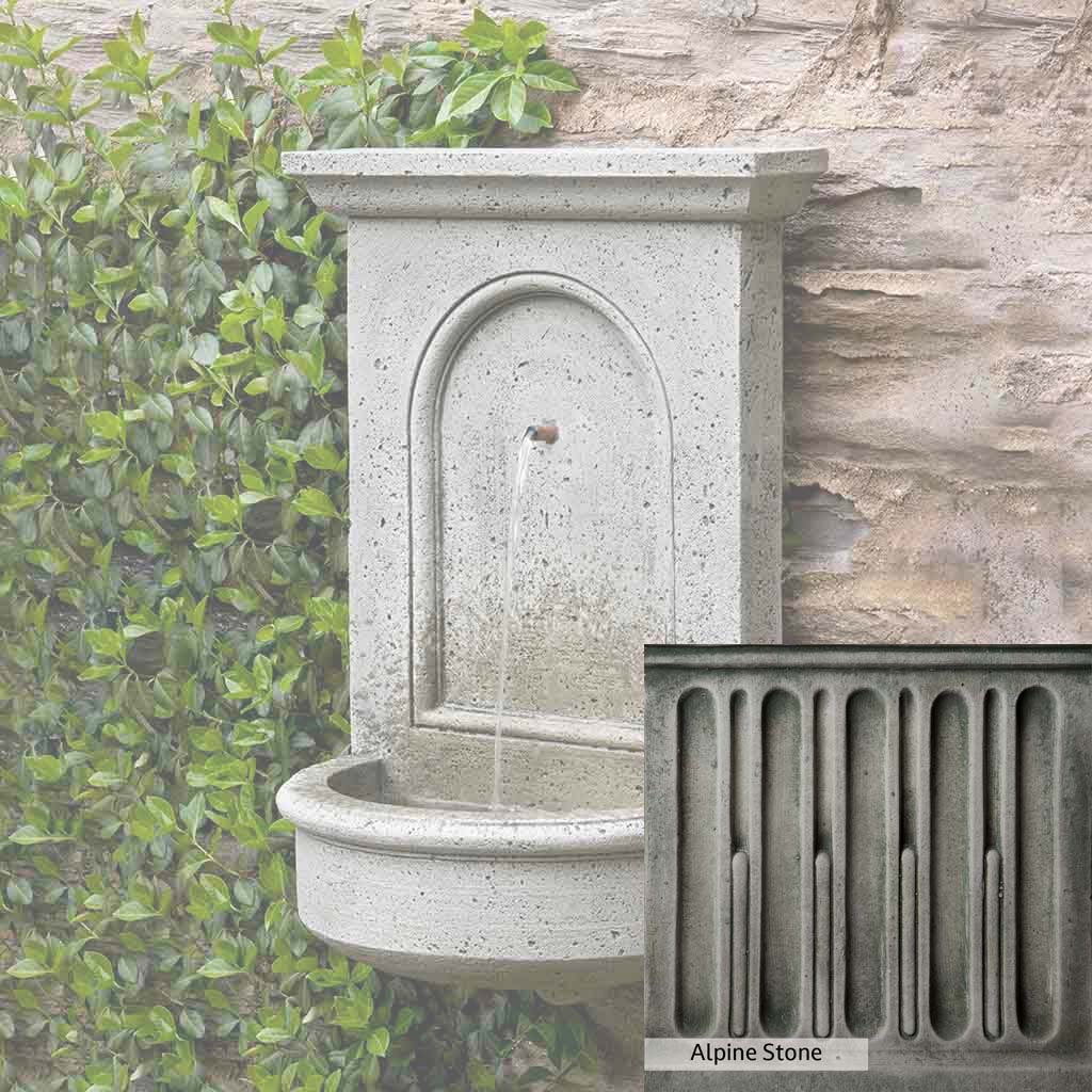 The Portico Fountain is handcrafted by skilled artisans in the USA. The Campania team applies the unique patina with experienced hands, making each piece special. This fountain is featured in the Alpine Stone color. Campania International's exclusive cast stone blend is expertly molded to create each piece in the construction of this fountain. Due to the materials used and manufacturing processes, as well as variations in photography conditions, natural differences may occur in size, weight, and color. The actual color may vary from the photo.