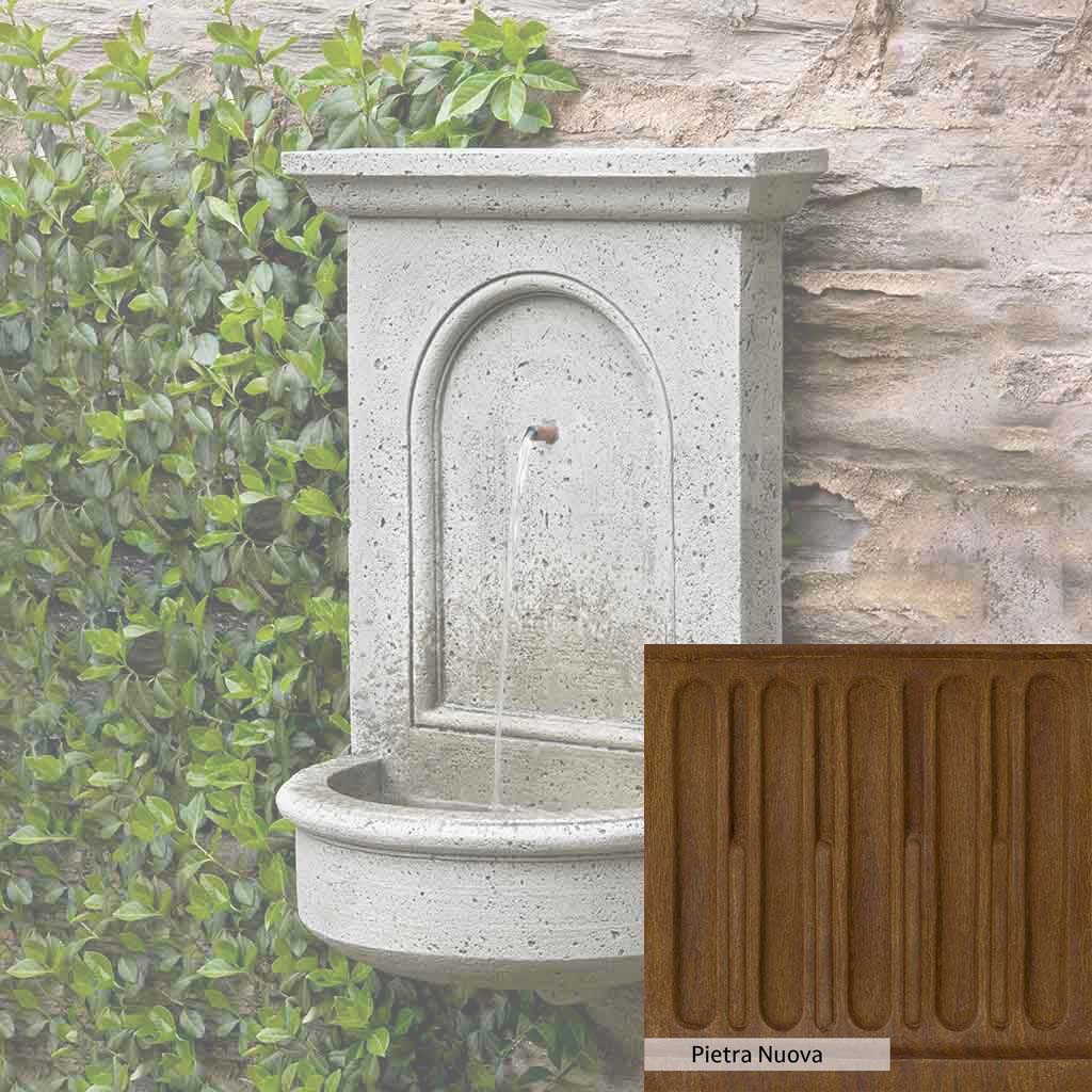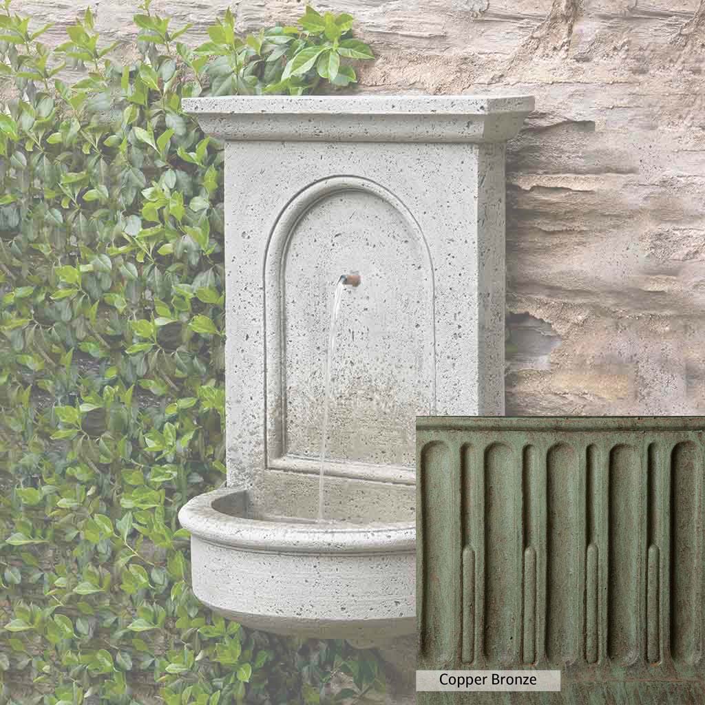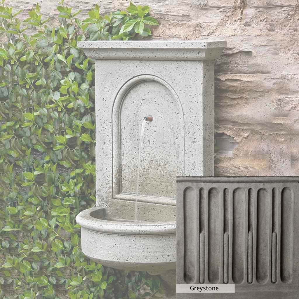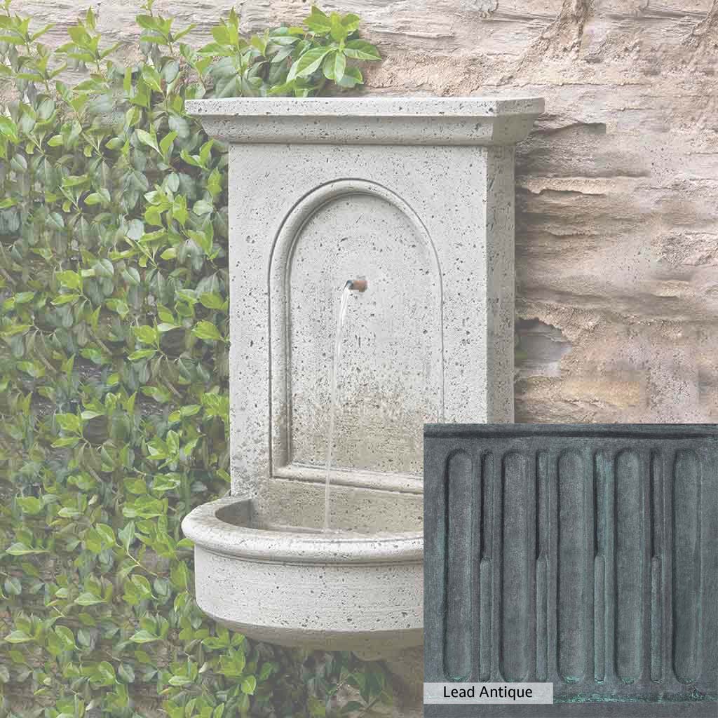 The Portico Fountain is handcrafted by skilled artisans in the USA. The Campania team applies the unique patina with experienced hands, making each piece special. This fountain is featured in the Alpine Stone color. Campania International's exclusive cast stone blend is expertly molded to create each piece in the construction of this fountain. Due to the materials used and manufacturing processes, as well as variations in photography conditions, natural differences may occur in size, weight, and color. The actual color may vary from the photo.