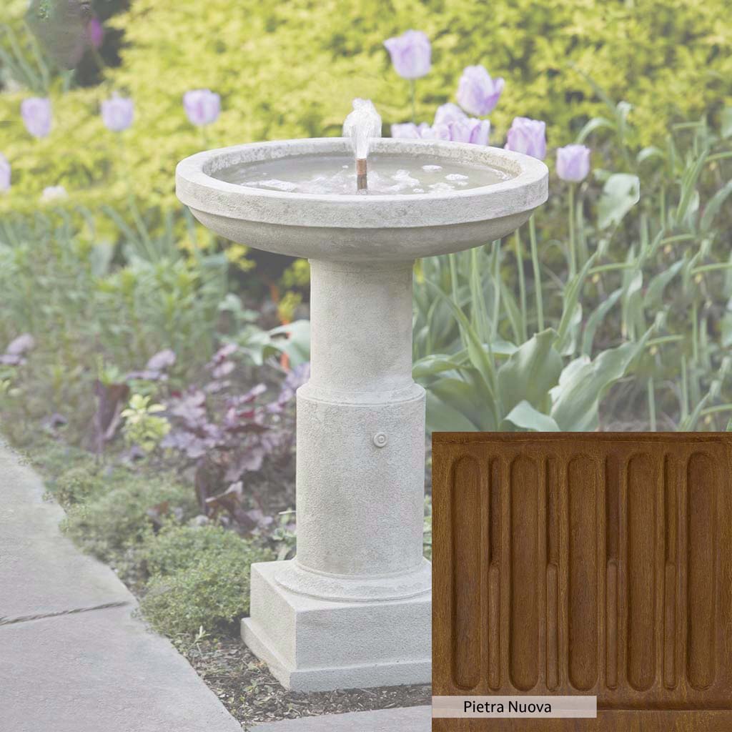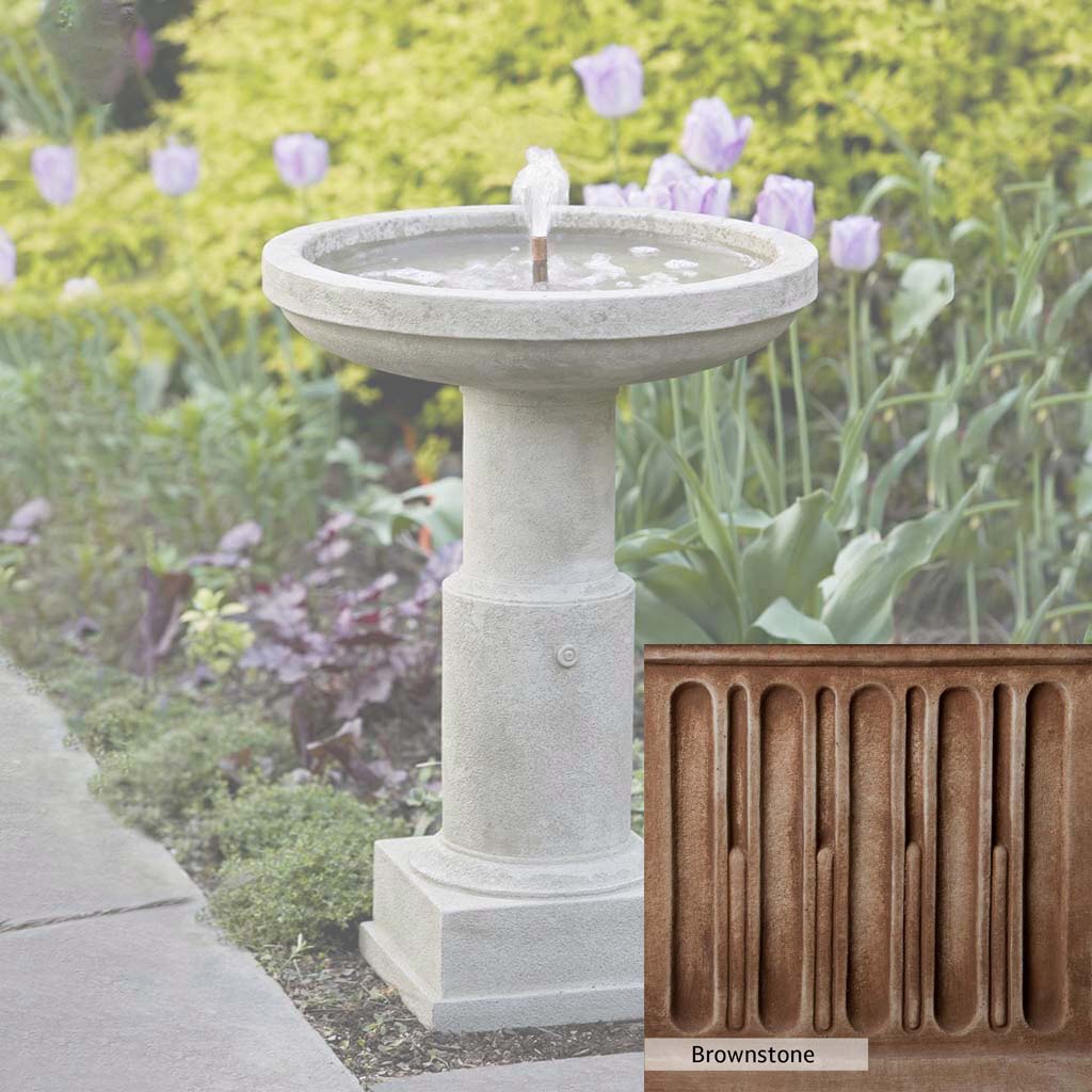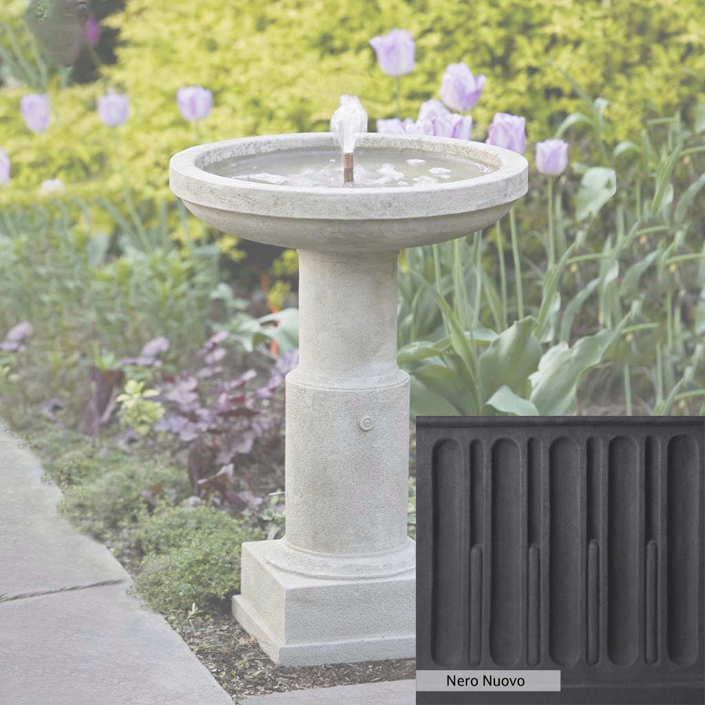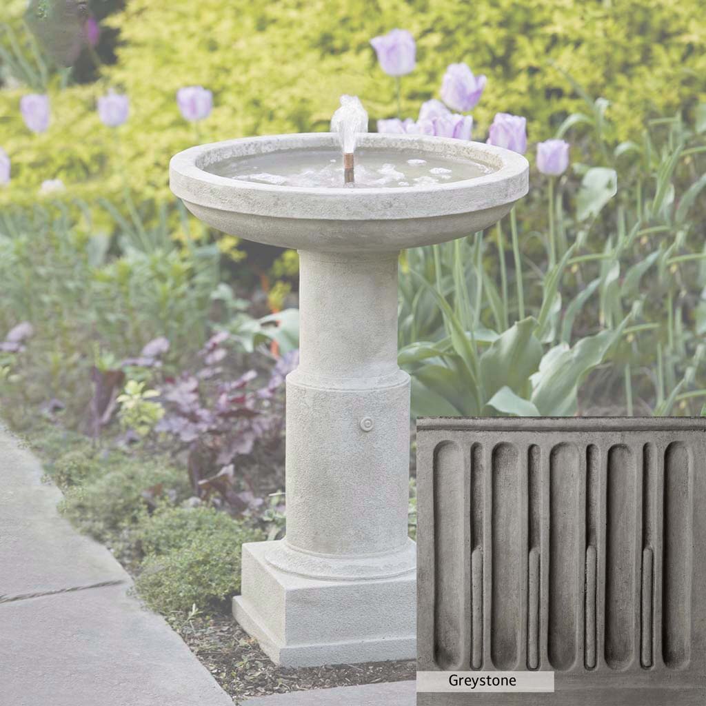 The Powys Fountain is handcrafted by skilled artisans in the USA. With their extensive experience, the Campania team applies a unique patina to ensure that each piece is special. This fountain is shown in the Greystone color. Campania International's proprietary cast stone blend is meticulously molded to create each piece used in the construction of this fountain. Due to the use of different materials and manufacturing processes, as well as varying photography conditions, natural variations in size, weight, and color can occur. The actual color may differ from the photo.