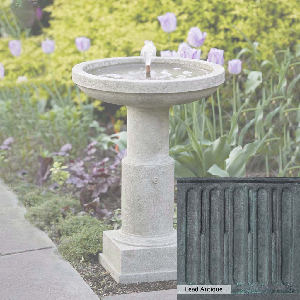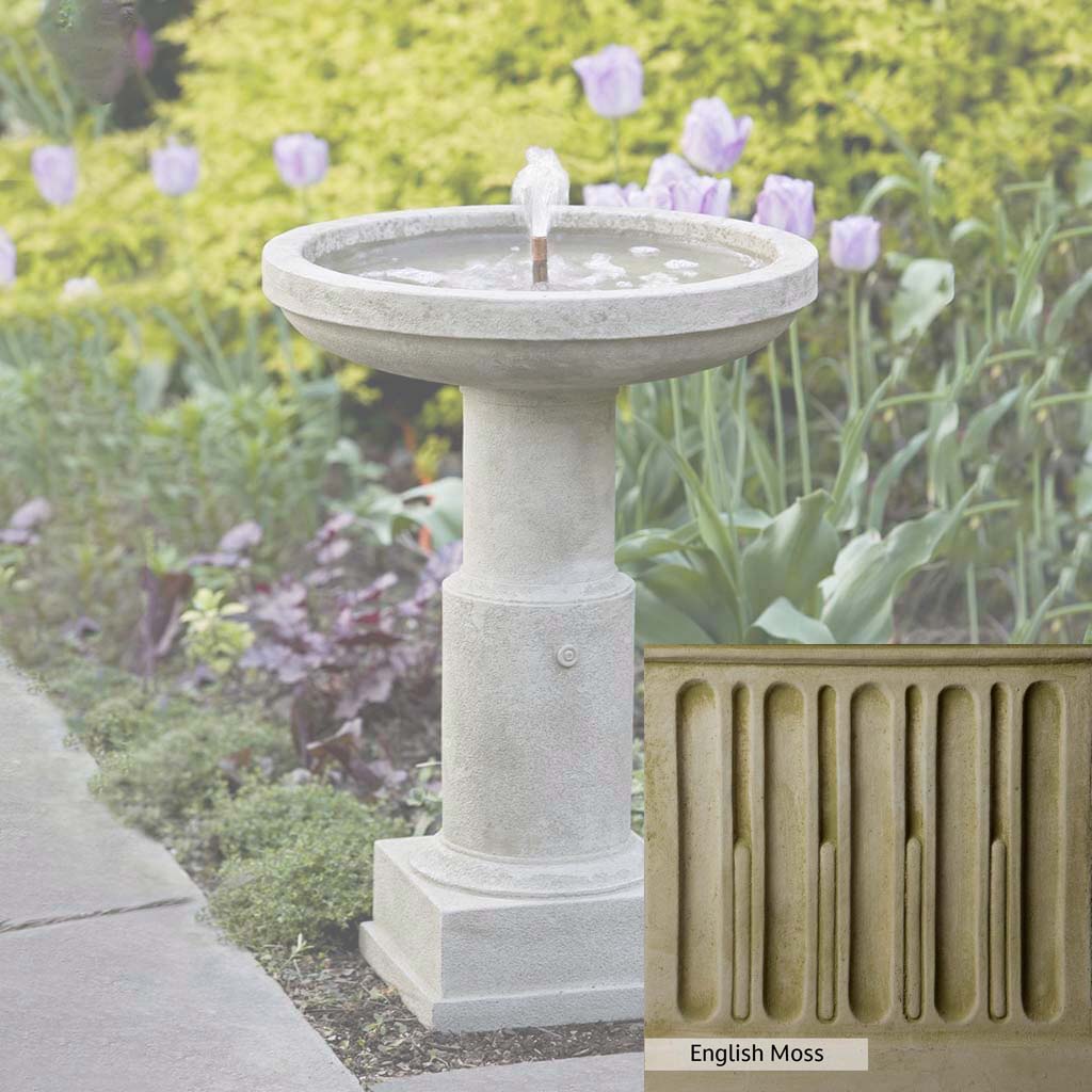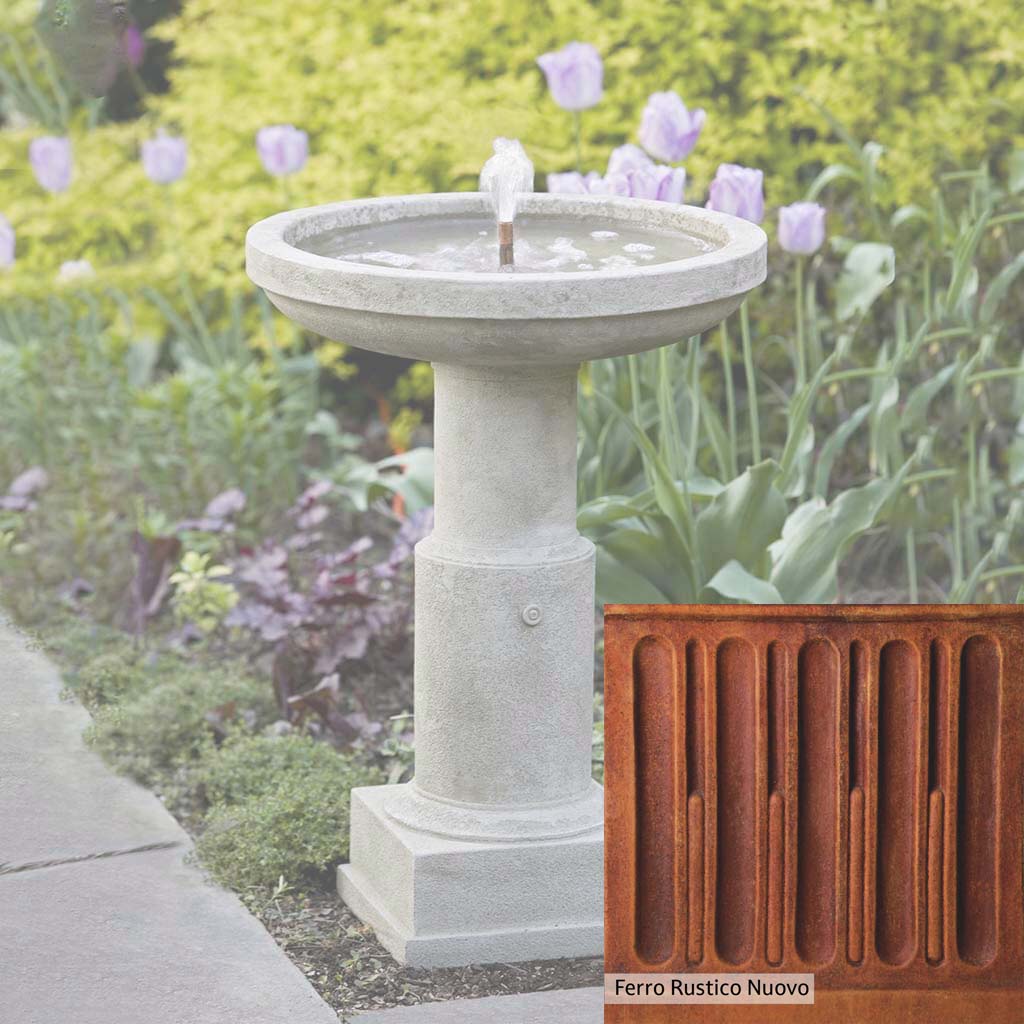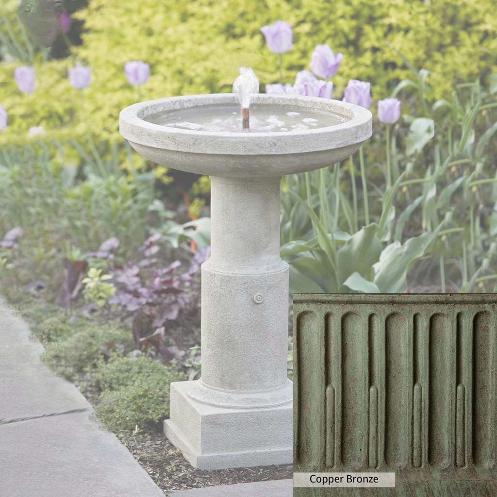 The Powys Fountain is handcrafted by skilled artisans in the USA. With their extensive experience, the Campania team applies a unique patina to ensure that each piece is special. This fountain is shown in the Greystone color. Campania International's proprietary cast stone blend is meticulously molded to create each piece used in the construction of this fountain. Due to the use of different materials and manufacturing processes, as well as varying photography conditions, natural variations in size, weight, and color can occur. The actual color may differ from the photo.