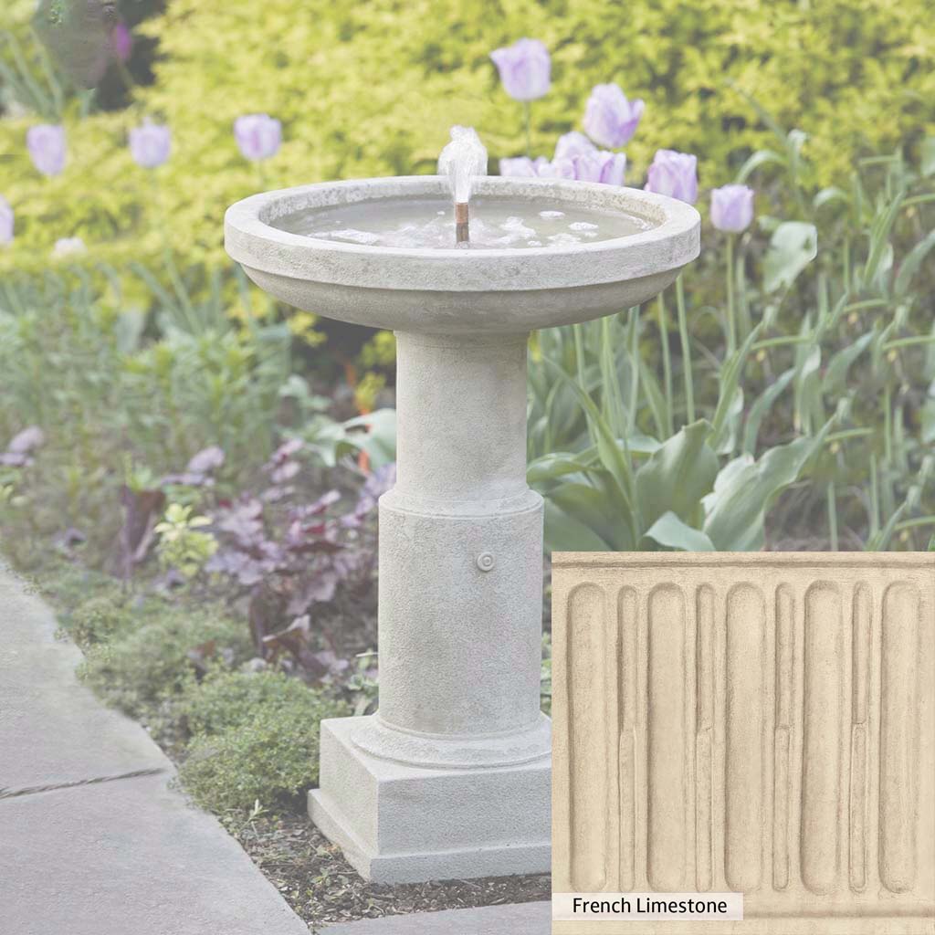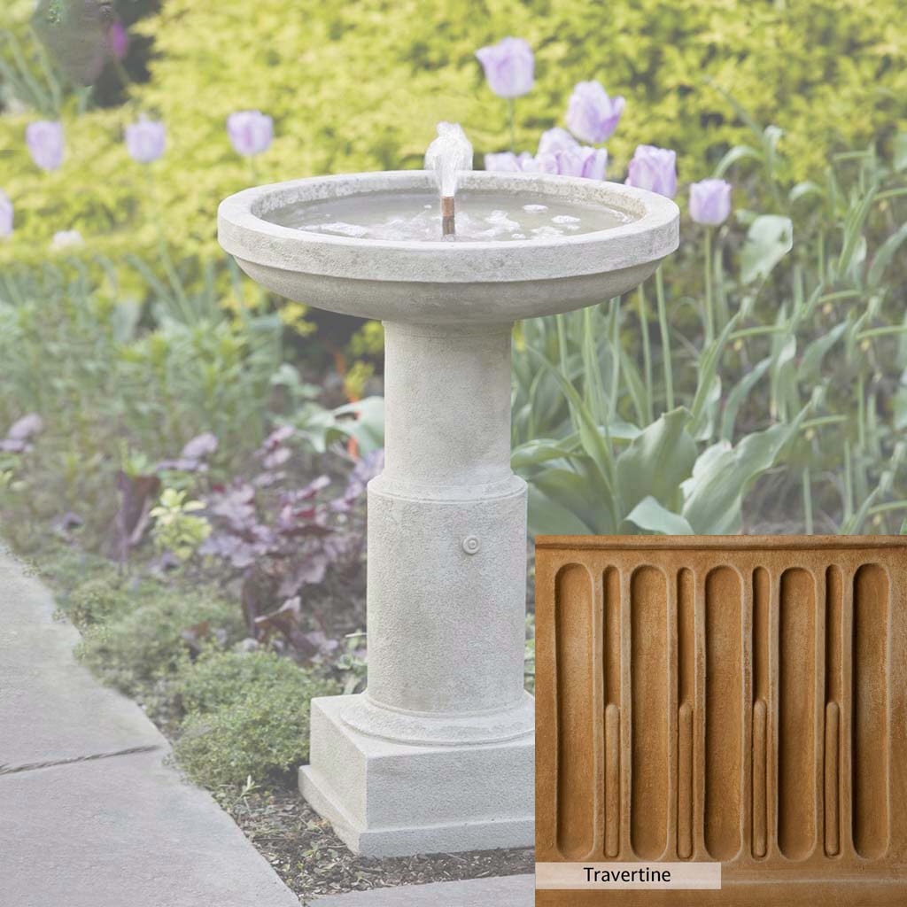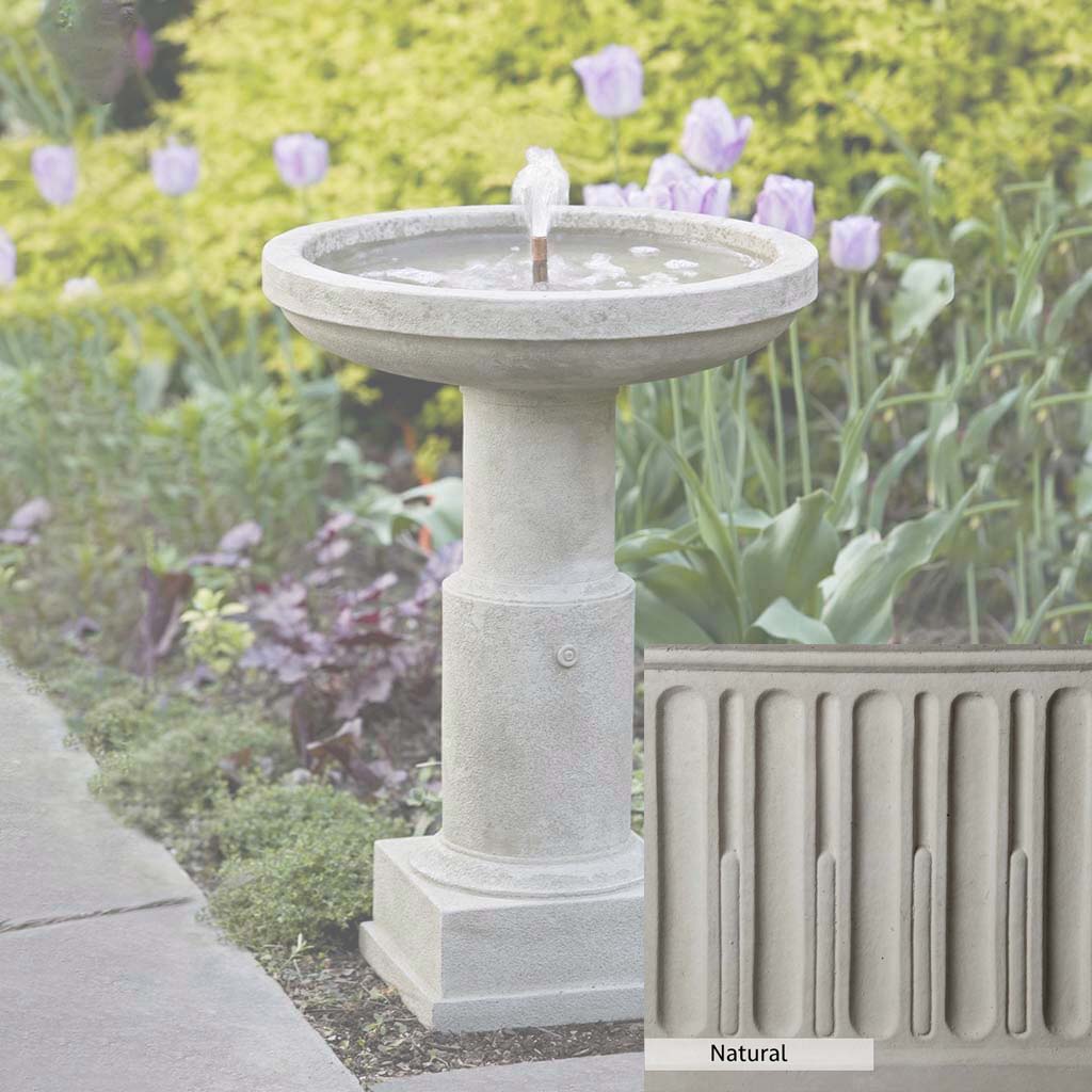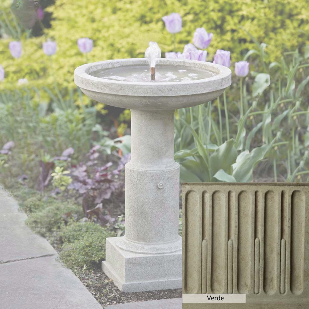 The Powys Fountain is handcrafted by skilled artisans in the USA. With their extensive experience, the Campania team applies a unique patina to ensure that each piece is special. This fountain is shown in the Greystone color. Campania International's proprietary cast stone blend is meticulously molded to create each piece used in the construction of this fountain. Due to the use of different materials and manufacturing processes, as well as varying photography conditions, natural variations in size, weight, and color can occur. The actual color may differ from the photo.