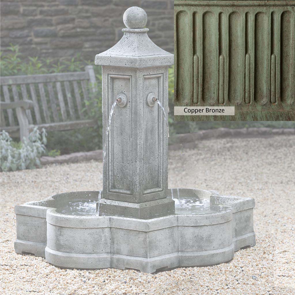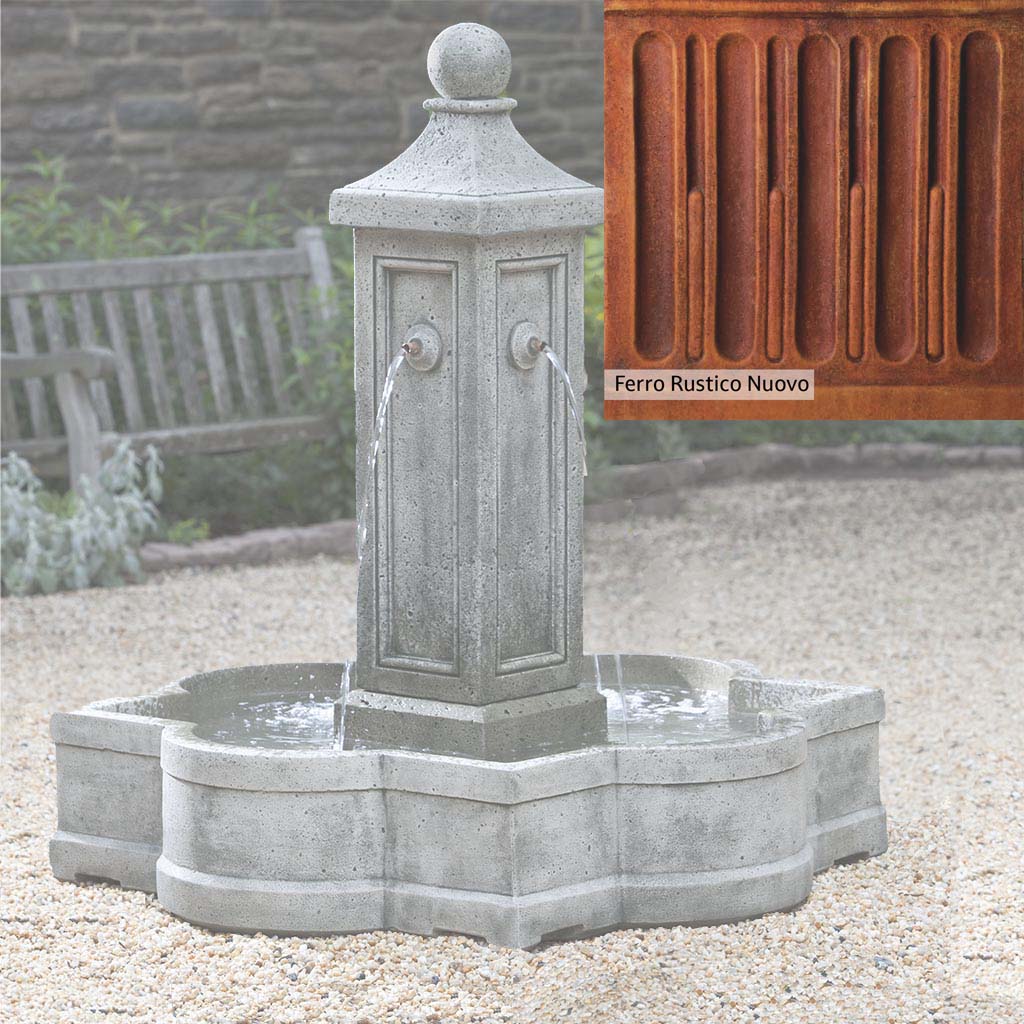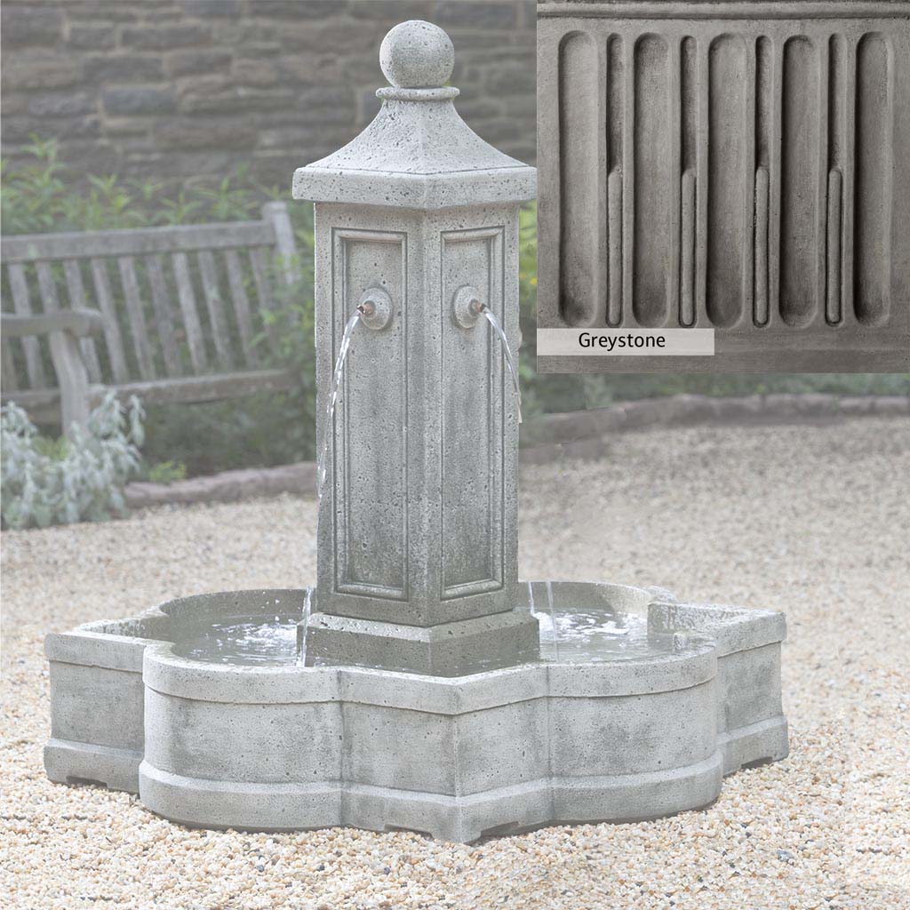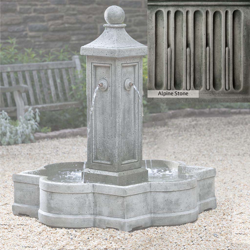 The Provence Fountain is handcrafted by skilled artisans in the USA. The Campania team applies the unique patina with experienced hands, making each piece special. This fountain is featured in the Alpine Stone color. Campania International's exclusive cast stone blend is expertly molded to create each piece in the construction of this fountain. Due to the materials used and manufacturing processes, as well as variations in photography conditions, natural differences may occur in size, weight, and color. The actual color may vary from the photo.