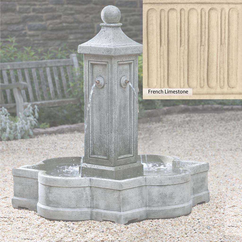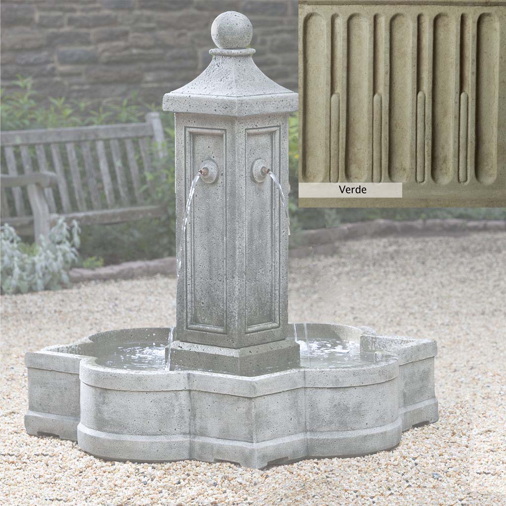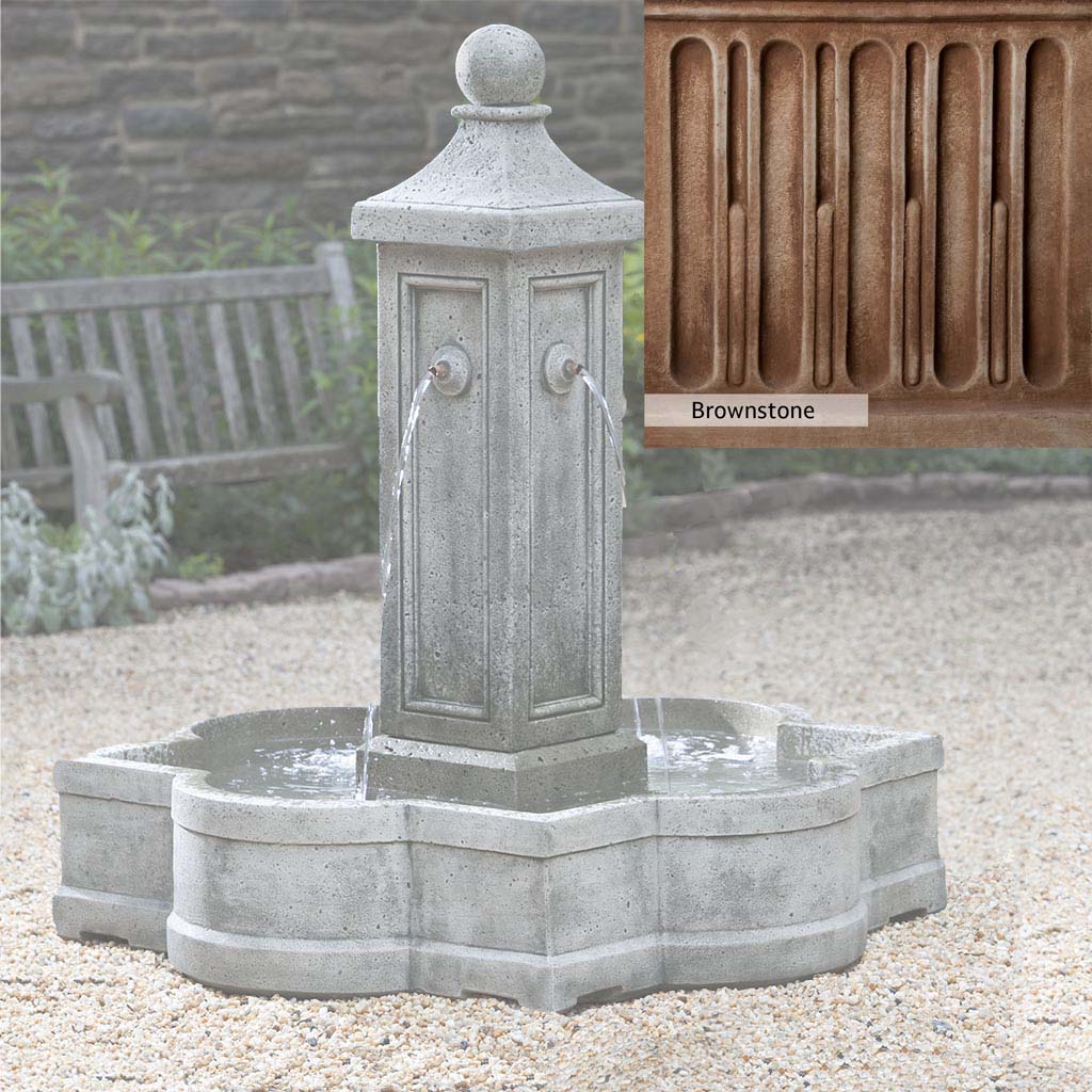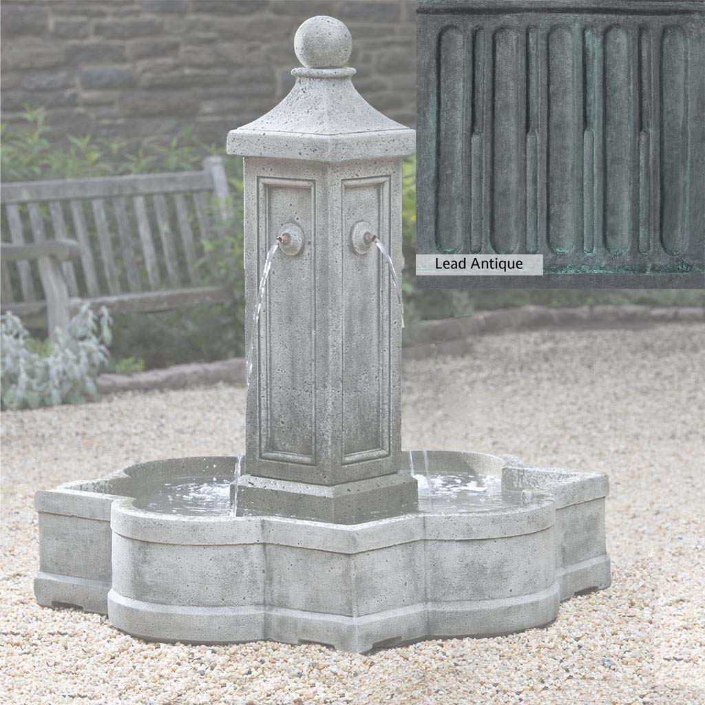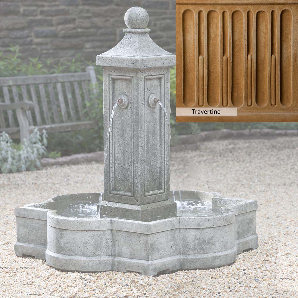 The Provence Fountain is handcrafted by skilled artisans in the USA. The Campania team applies the unique patina with experienced hands, making each piece special. This fountain is featured in the Alpine Stone color. Campania International's exclusive cast stone blend is expertly molded to create each piece in the construction of this fountain. Due to the materials used and manufacturing processes, as well as variations in photography conditions, natural differences may occur in size, weight, and color. The actual color may vary from the photo.