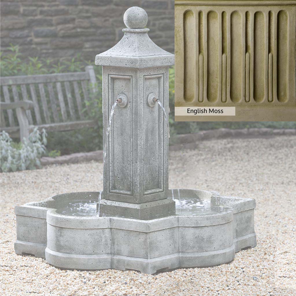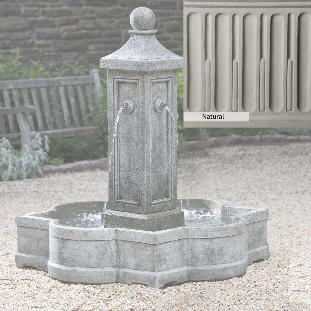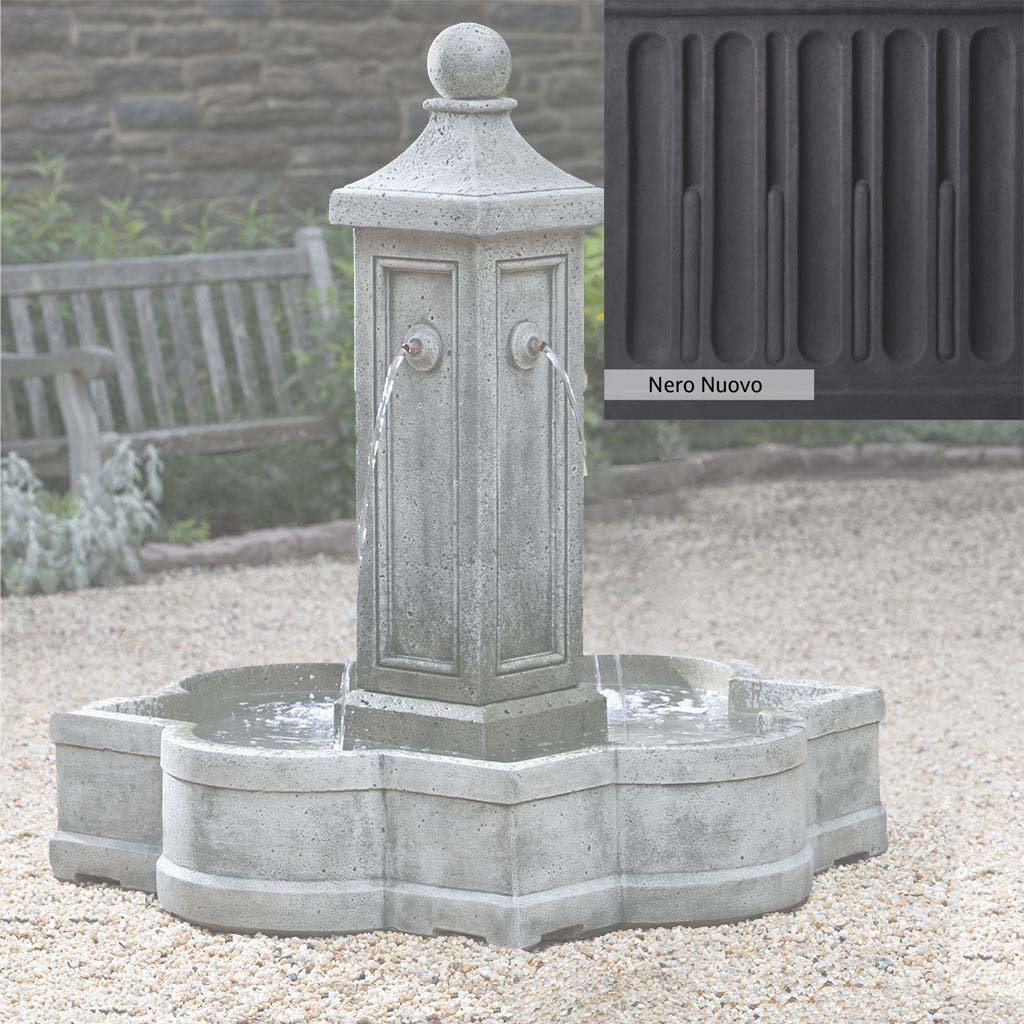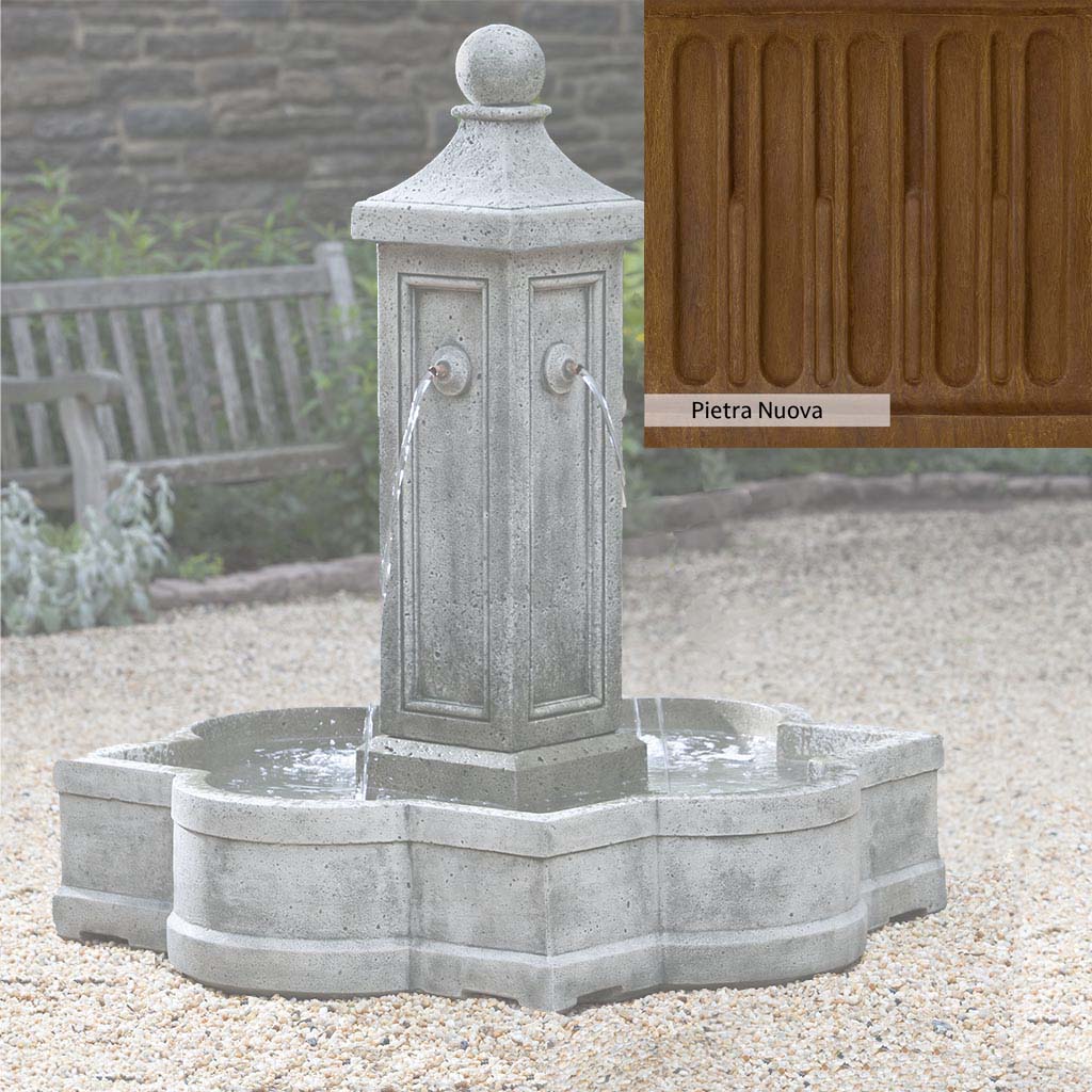 The Provence Fountain is handcrafted by skilled artisans in the USA. The Campania team applies the unique patina with experienced hands, making each piece special. This fountain is featured in the Alpine Stone color. Campania International's exclusive cast stone blend is expertly molded to create each piece in the construction of this fountain. Due to the materials used and manufacturing processes, as well as variations in photography conditions, natural differences may occur in size, weight, and color. The actual color may vary from the photo.