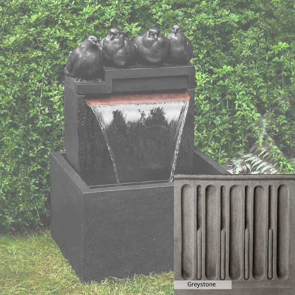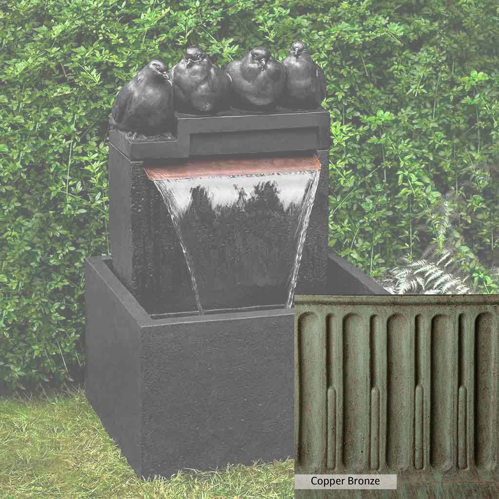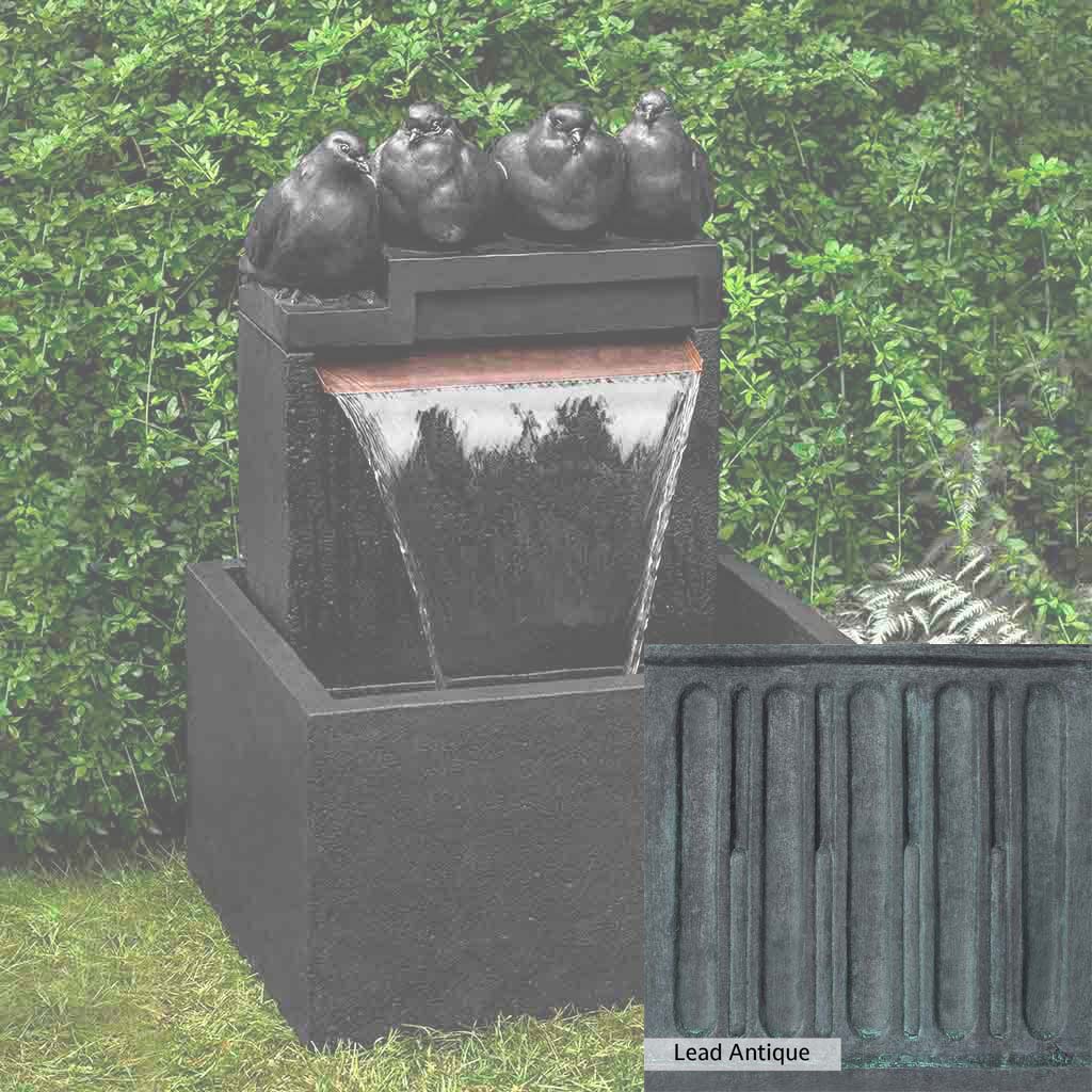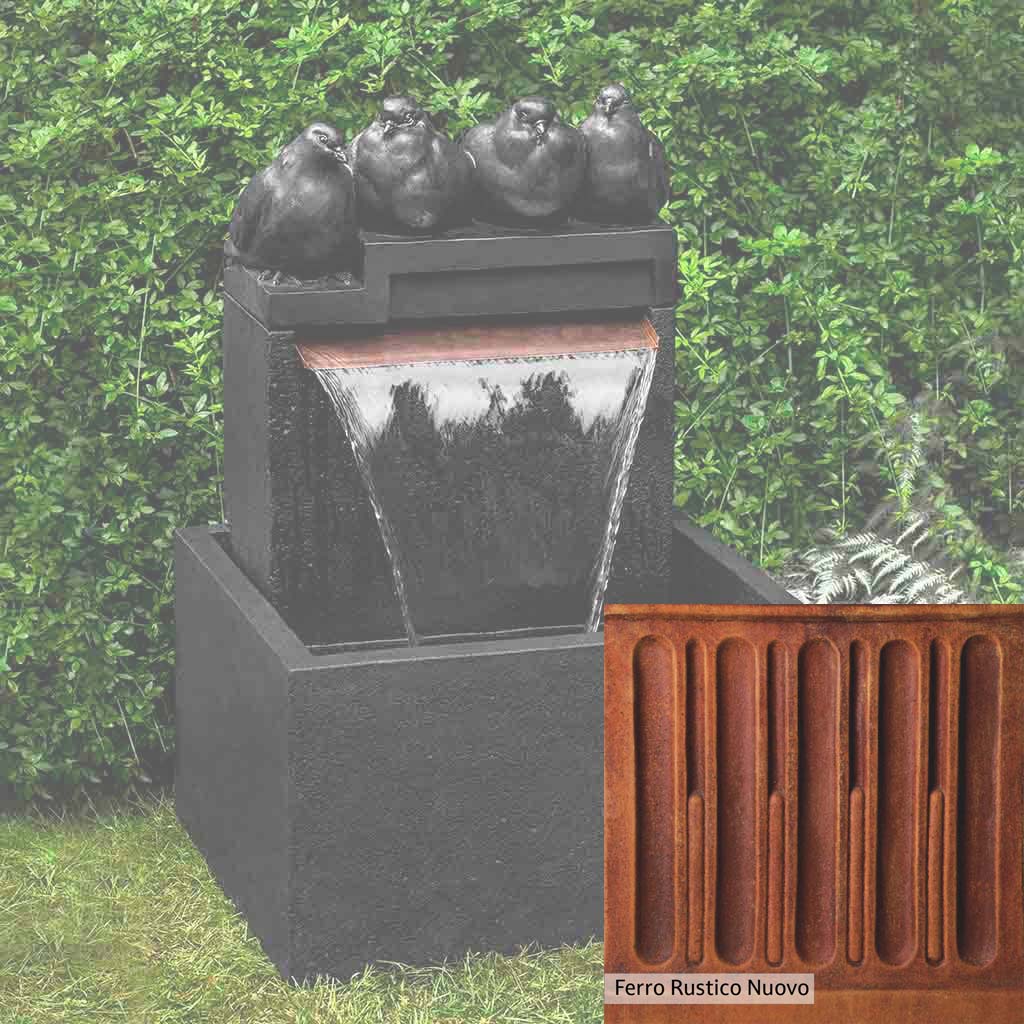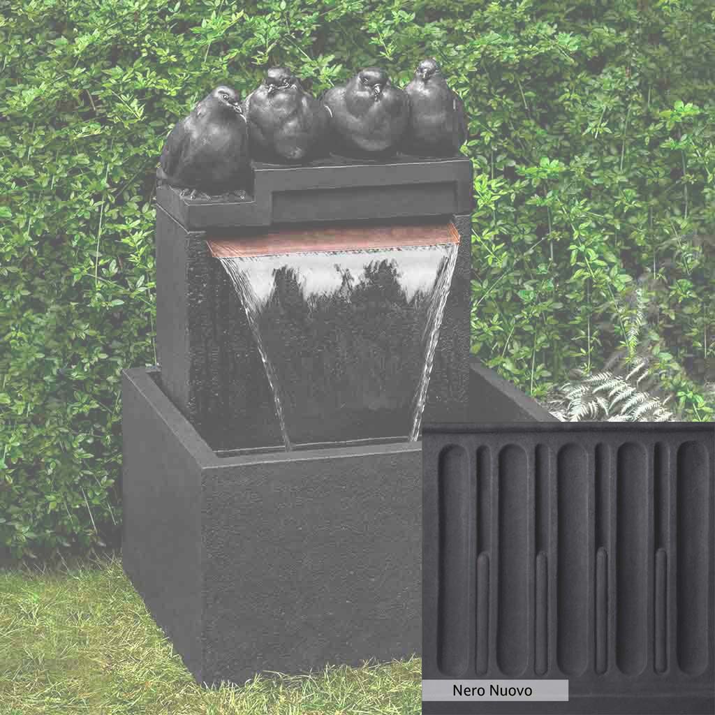 The Quartet Fountain is handcrafted by skilled artisans in the USA. The Campania team applies a unique patina with experienced hands, making each piece special. This fountain is featured in the Nero Nuovo color. Campania International's exclusive cast stone blend is expertly molded to create each piece in the construction of this fountain. Due to the materials used and manufacturing processes, as well as variations in photography conditions, natural differences may occur in size, weight, and color. The actual color may vary from the photo.