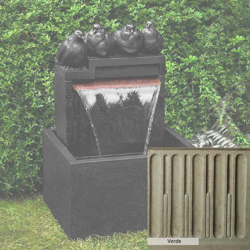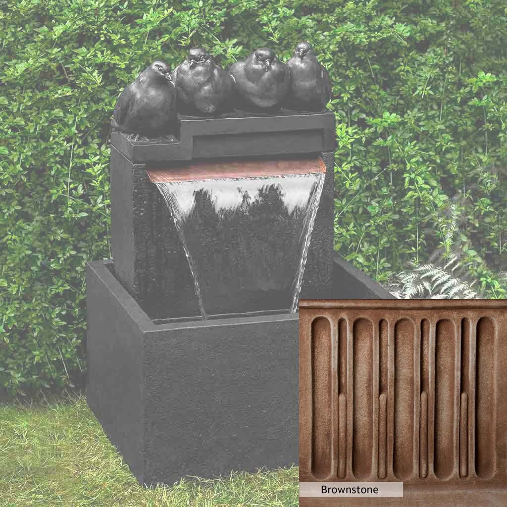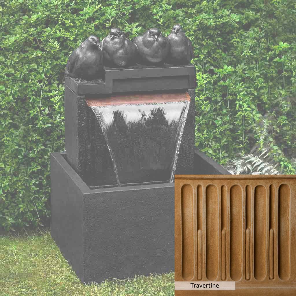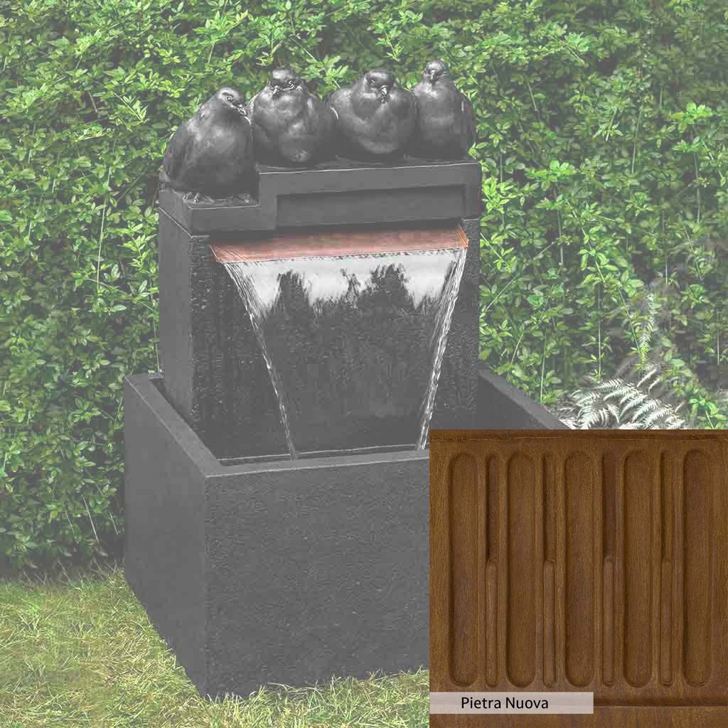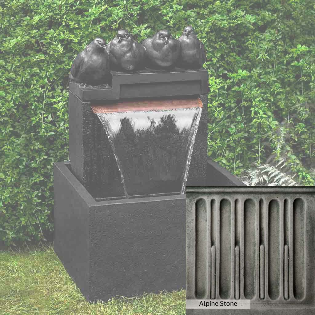 The Quartet Fountain is handcrafted by skilled artisans in the USA. The Campania team applies a unique patina with experienced hands, making each piece special. This fountain is featured in the Nero Nuovo color. Campania International's exclusive cast stone blend is expertly molded to create each piece in the construction of this fountain. Due to the materials used and manufacturing processes, as well as variations in photography conditions, natural differences may occur in size, weight, and color. The actual color may vary from the photo.