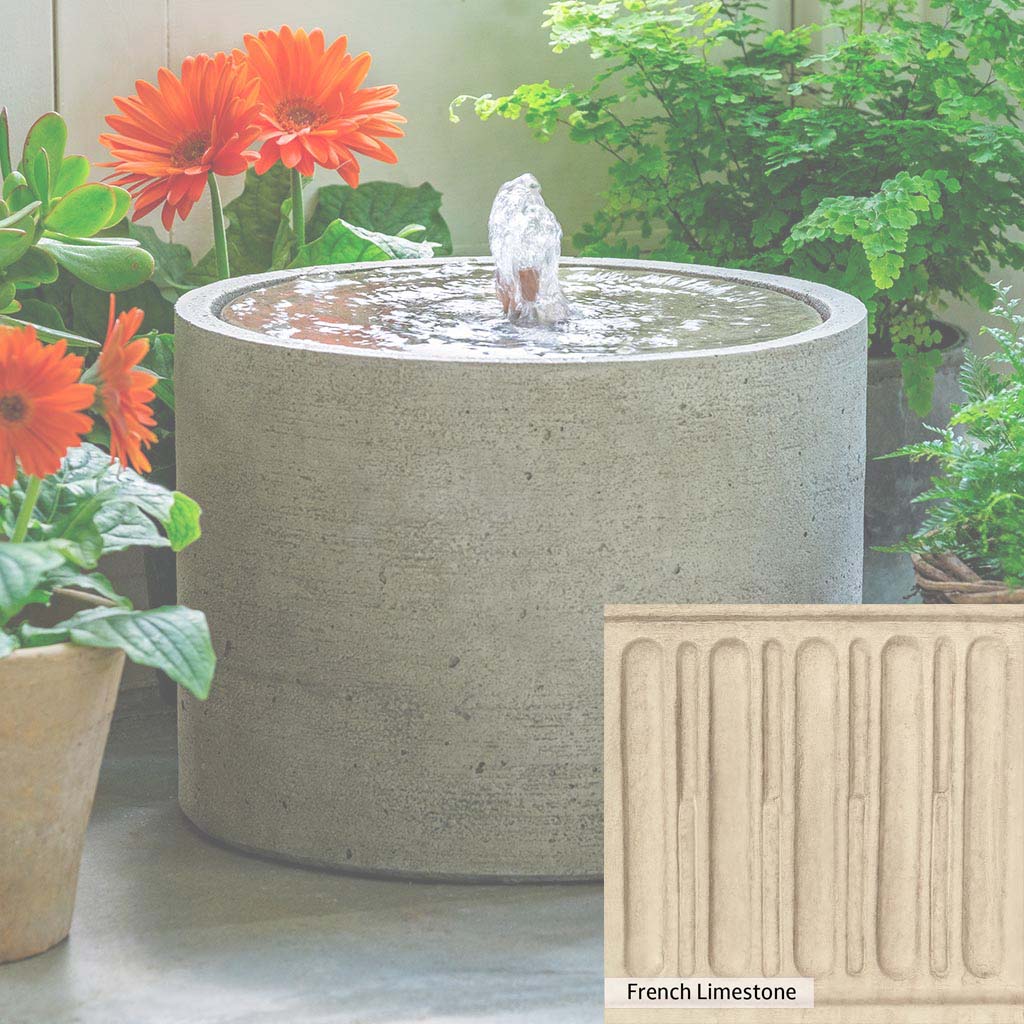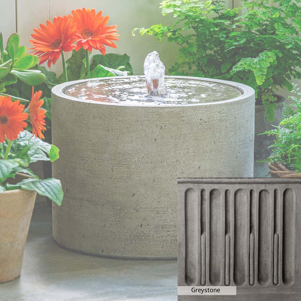 Skilled artisans in the USA handcraft the Salinas Low Fountain. The Campania team applies the unique patina using their experience, making each piece one-of-a-kind. This fountain is shown in the Greystone color. Campania International's unique cast stone blend is meticulously molded to create each piece used in the construction of this fountain. Due to the materials, manufacturing processes, and variations in photography conditions, natural differences can occur in size, weight, and color. The actual color may vary from the photo.