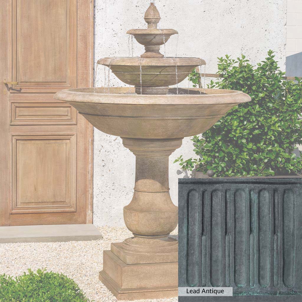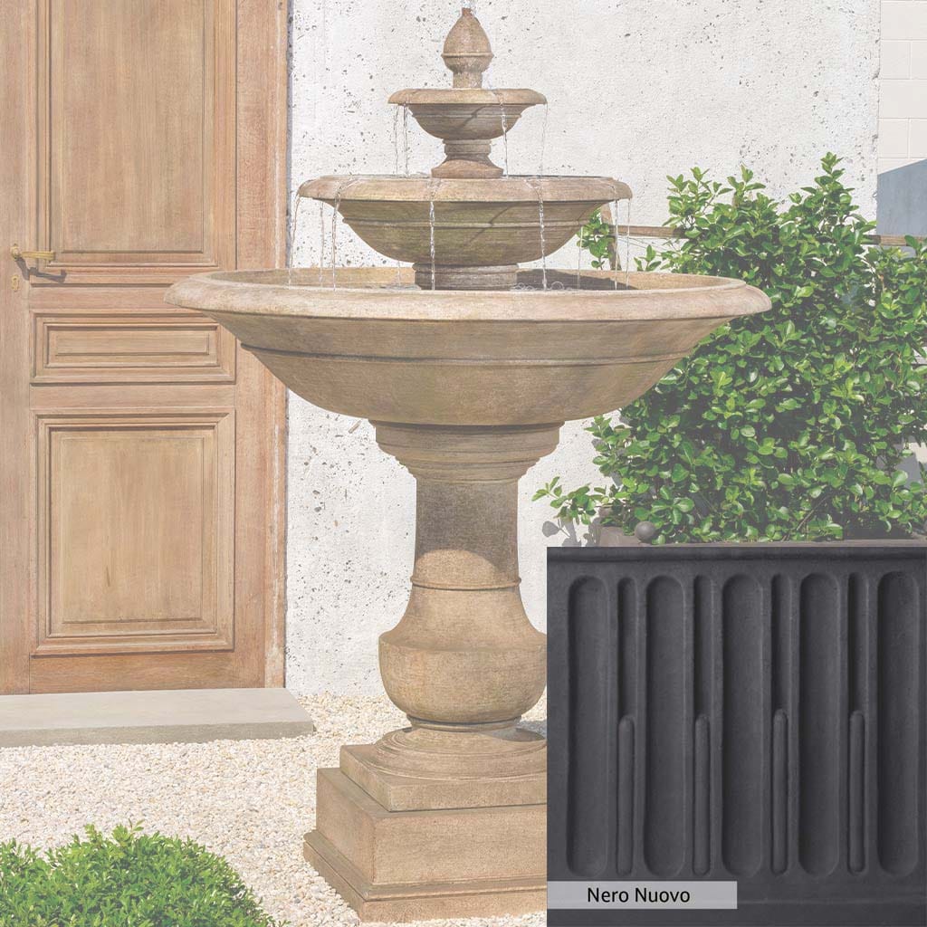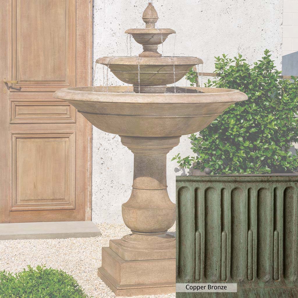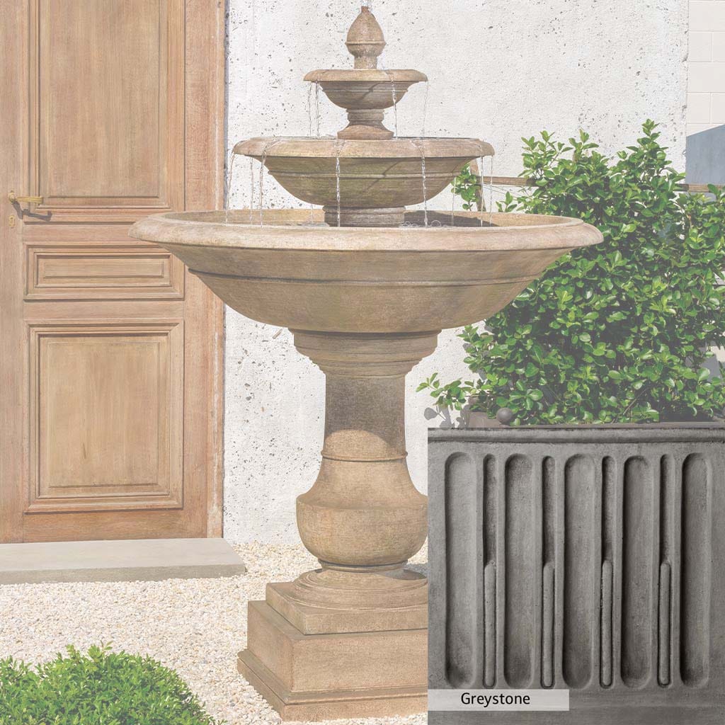 Skilled artisans in the USA handcraft the Savannah Fountain. The Campania team applies the unique patina using their experience, making each piece one-of-a-kind. This fountain is shown in the Travertine color. Campania International's unique cast stone blend is meticulously molded to create each piece used in the construction of this fountain. Due to the materials, manufacturing processes, and variations in photography conditions, natural differences can occur in size, weight, and color. The actual color may vary from the photo.