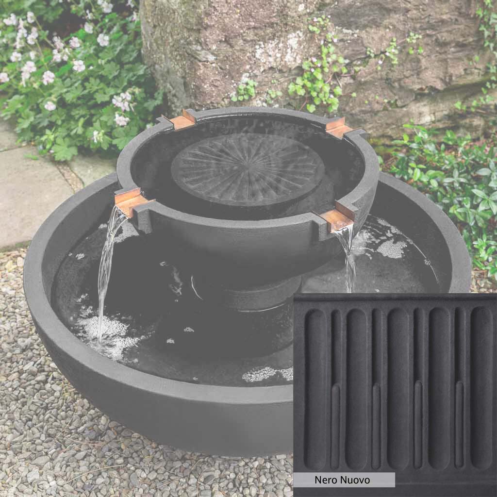 Skilled artisans in the USA handcraft the Small Del Rey Fountain. The Campania team applies a unique patina, making each piece one-of-a-kind. This fountain is shown in the Nero Nuovo color. Due to materials, manufacturing processes, and variations in photography conditions, natural differences can occur in size, weight, and color. The actual color may vary from the photo.