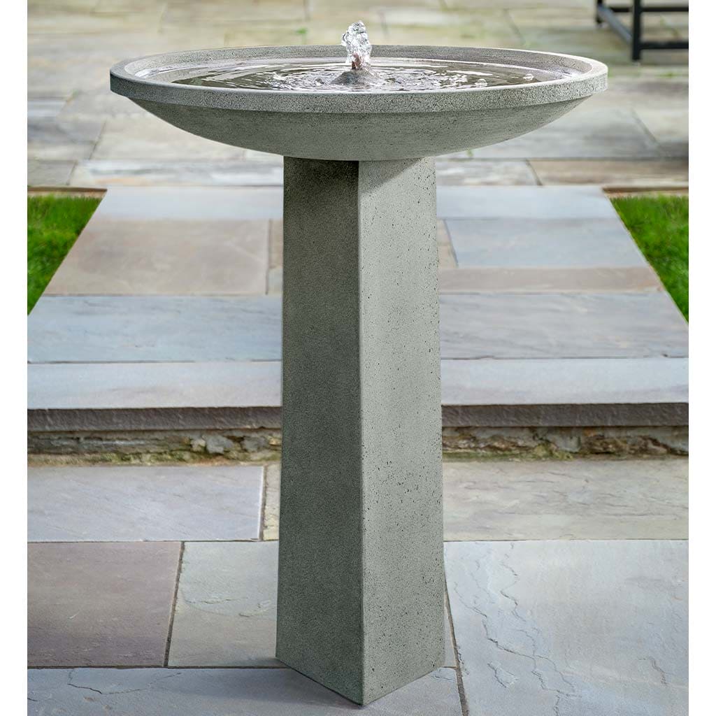 Skilled artisans in the USA handcraft the Spire Fountain. The Campania team applies the unique patina using their experience, making each piece one-of-a-kind. This fountain is shown in the Alpine Stone color. Campania International's unique cast stone blend is meticulously molded to create each piece used in the construction of this fountain. Due to the materials, manufacturing processes, and variations in photography conditions, natural differences can occur in size, weight, and color. The actual color may vary from the photo.