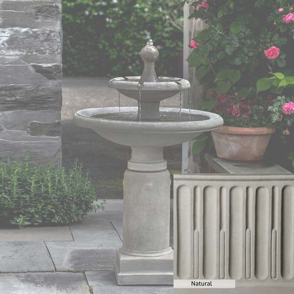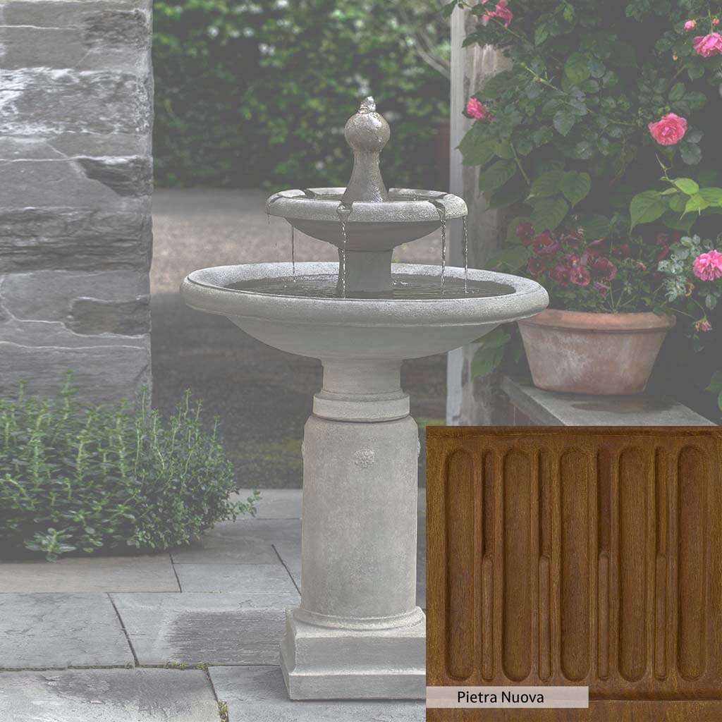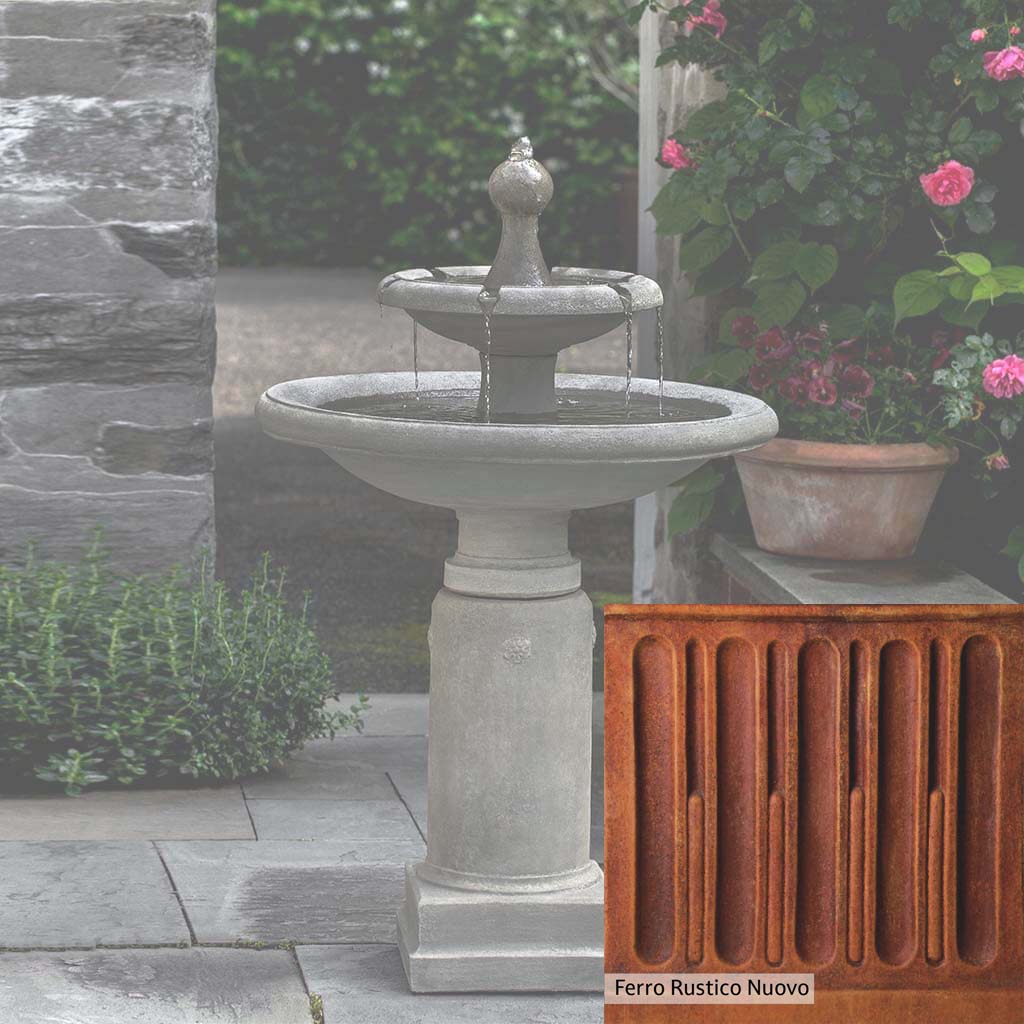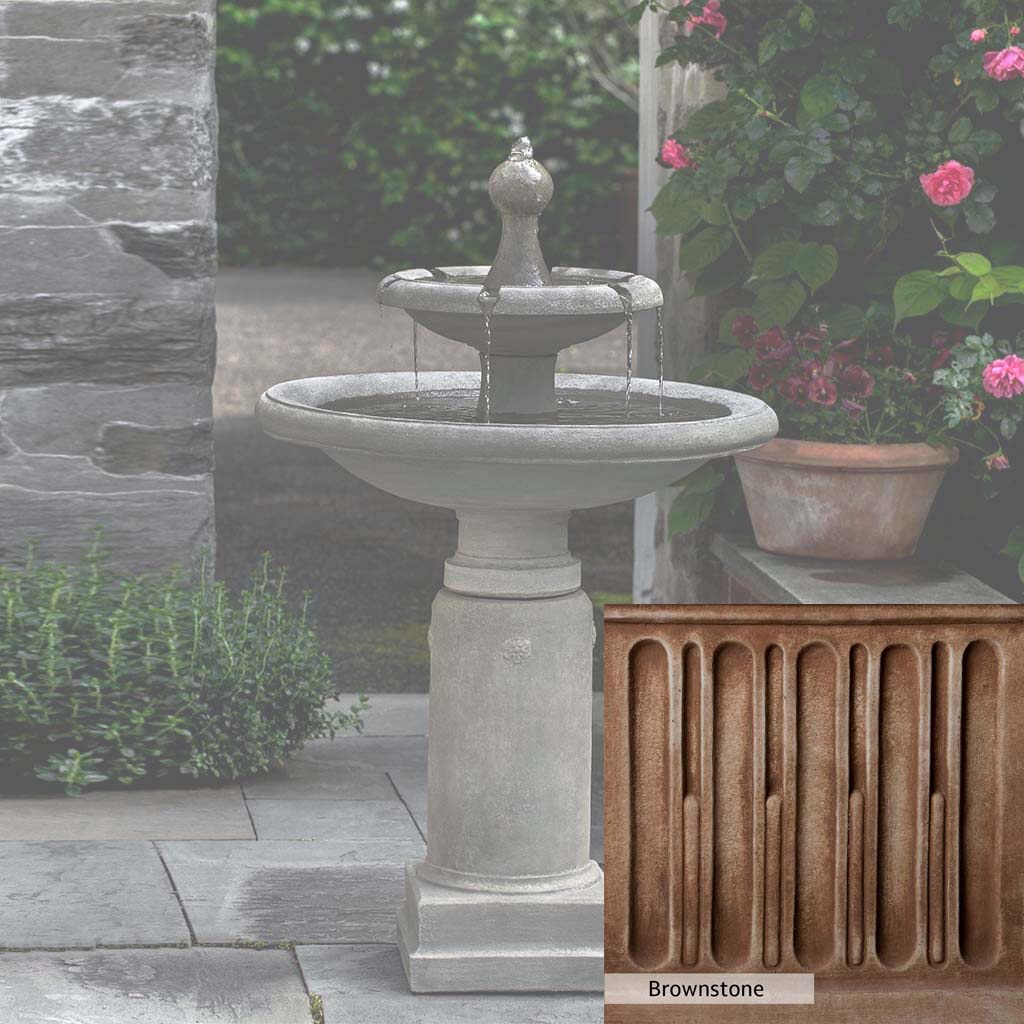 The Westover Fountain is handcrafted by skilled artisans in the USA. The Campania team applies a unique patina with experienced hands, making each piece special. This fountain is featured in the Brownstone color. Campania International's exclusive cast stone blend is expertly molded to create each piece in the construction of this fountain. Due to the materials used and manufacturing processes, as well as variations in photography conditions, natural differences may occur in size, weight, and color. The actual color may vary from the photo.