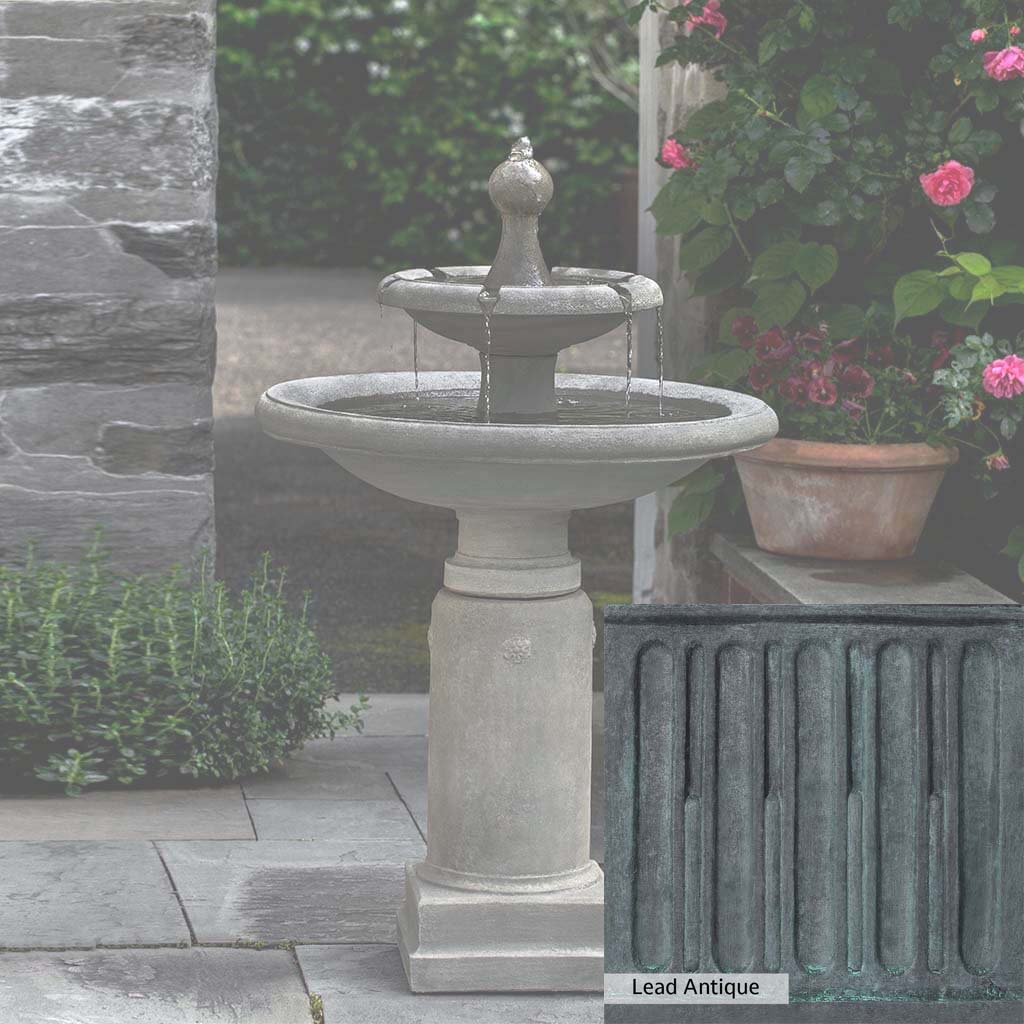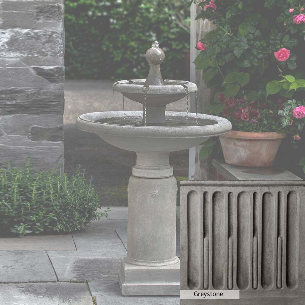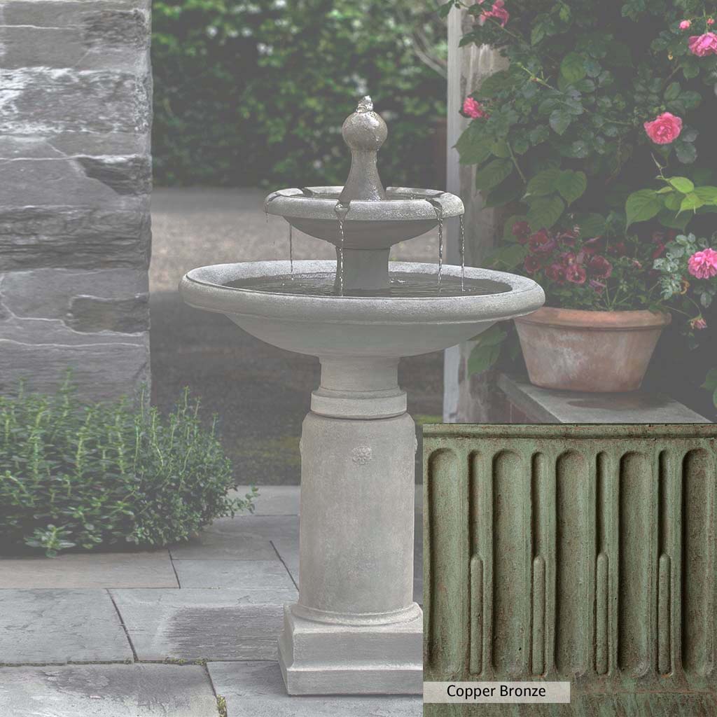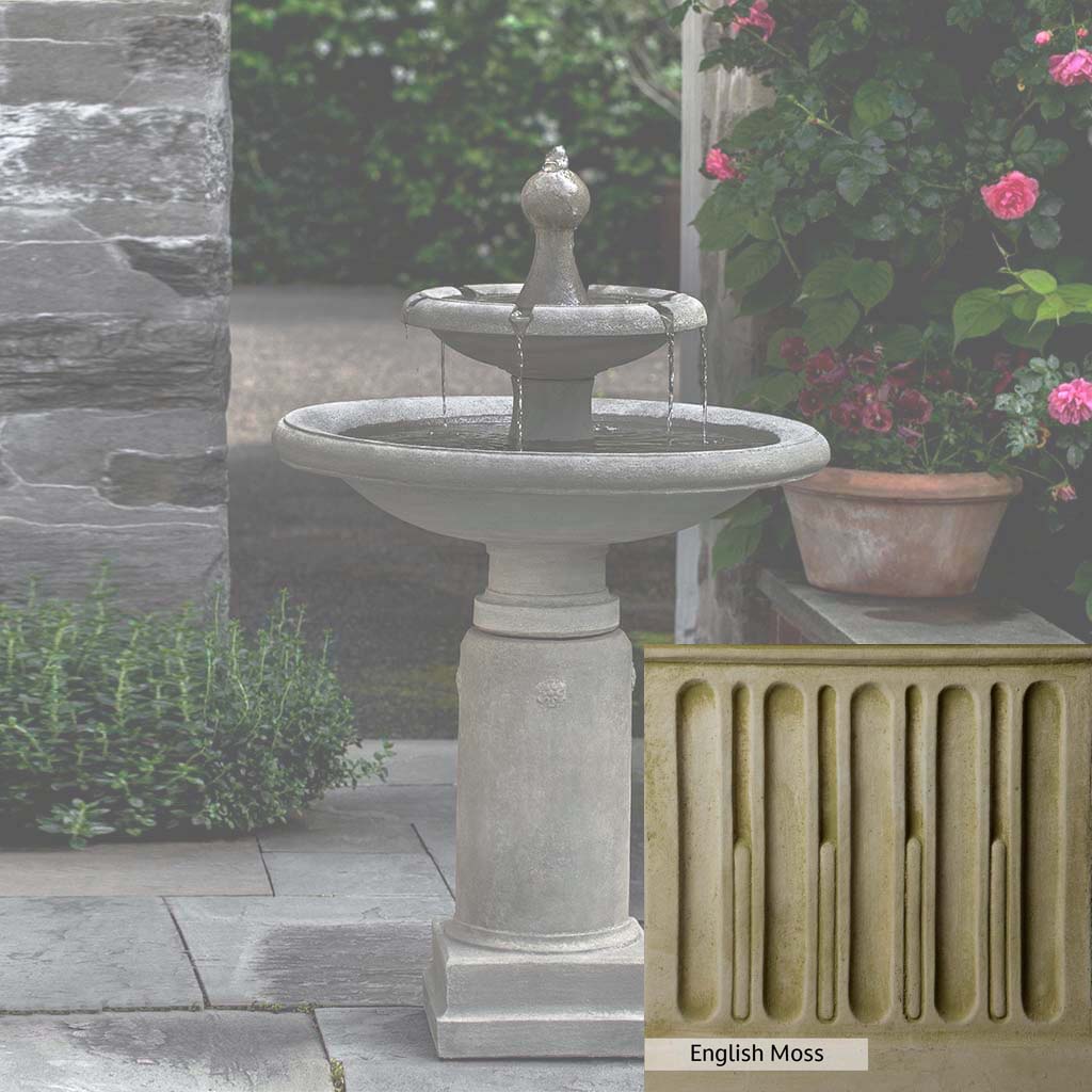 The Westover Fountain is handcrafted by skilled artisans in the USA. The Campania team applies a unique patina with experienced hands, making each piece special. This fountain is featured in the Brownstone color. Campania International's exclusive cast stone blend is expertly molded to create each piece in the construction of this fountain. Due to the materials used and manufacturing processes, as well as variations in photography conditions, natural differences may occur in size, weight, and color. The actual color may vary from the photo.