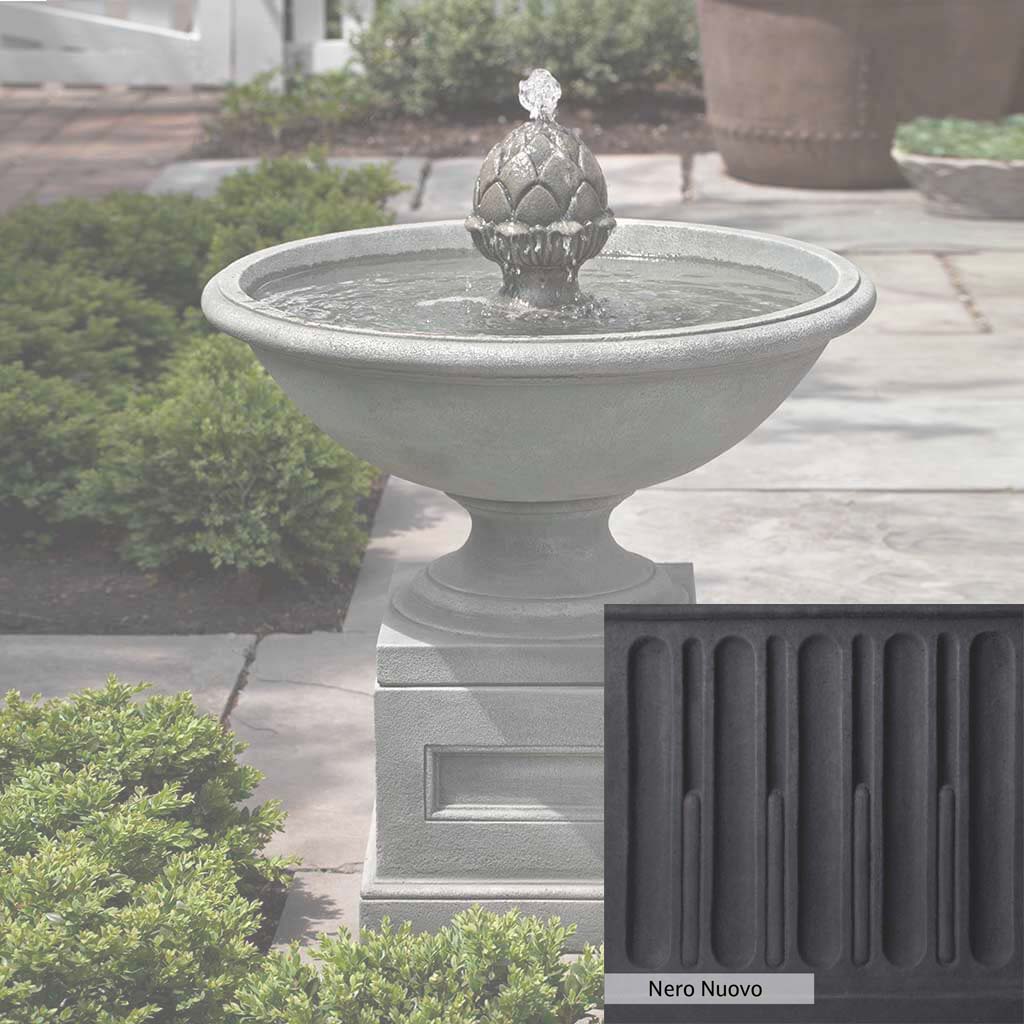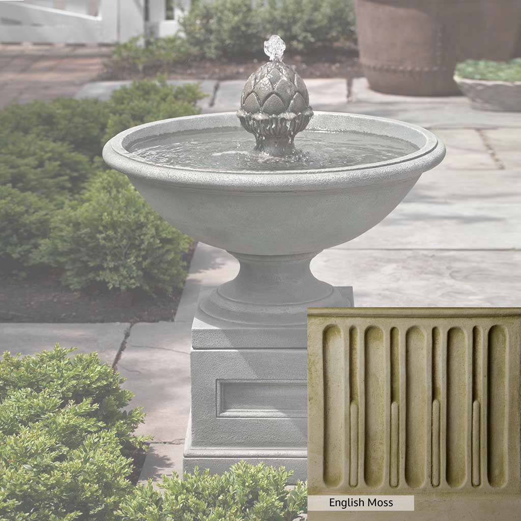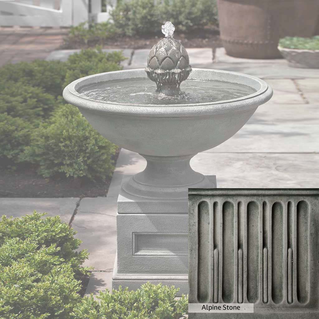 The Williamsburg Chiswell Fountain is handcrafted by skilled artisans in the USA. The Campania team applies a unique patina with experienced hands, making each piece special. This fountain is featured in the Alpine Stone color. Campania International's exclusive cast stone blend is expertly molded to create each piece in the construction of this fountain. Due to the materials used and manufacturing processes, as well as variations in photography conditions, natural differences may occur in size, weight, and color. The actual color may vary from the photo.