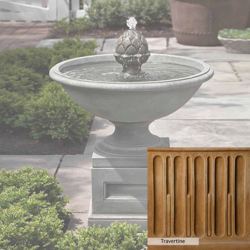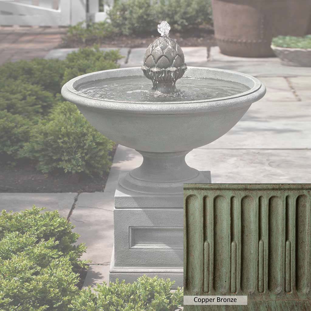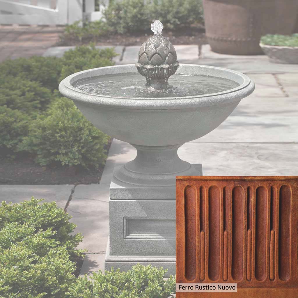 The Williamsburg Chiswell Fountain is handcrafted by skilled artisans in the USA. The Campania team applies a unique patina with experienced hands, making each piece special. This fountain is featured in the Alpine Stone color. Campania International's exclusive cast stone blend is expertly molded to create each piece in the construction of this fountain. Due to the materials used and manufacturing processes, as well as variations in photography conditions, natural differences may occur in size, weight, and color. The actual color may vary from the photo.