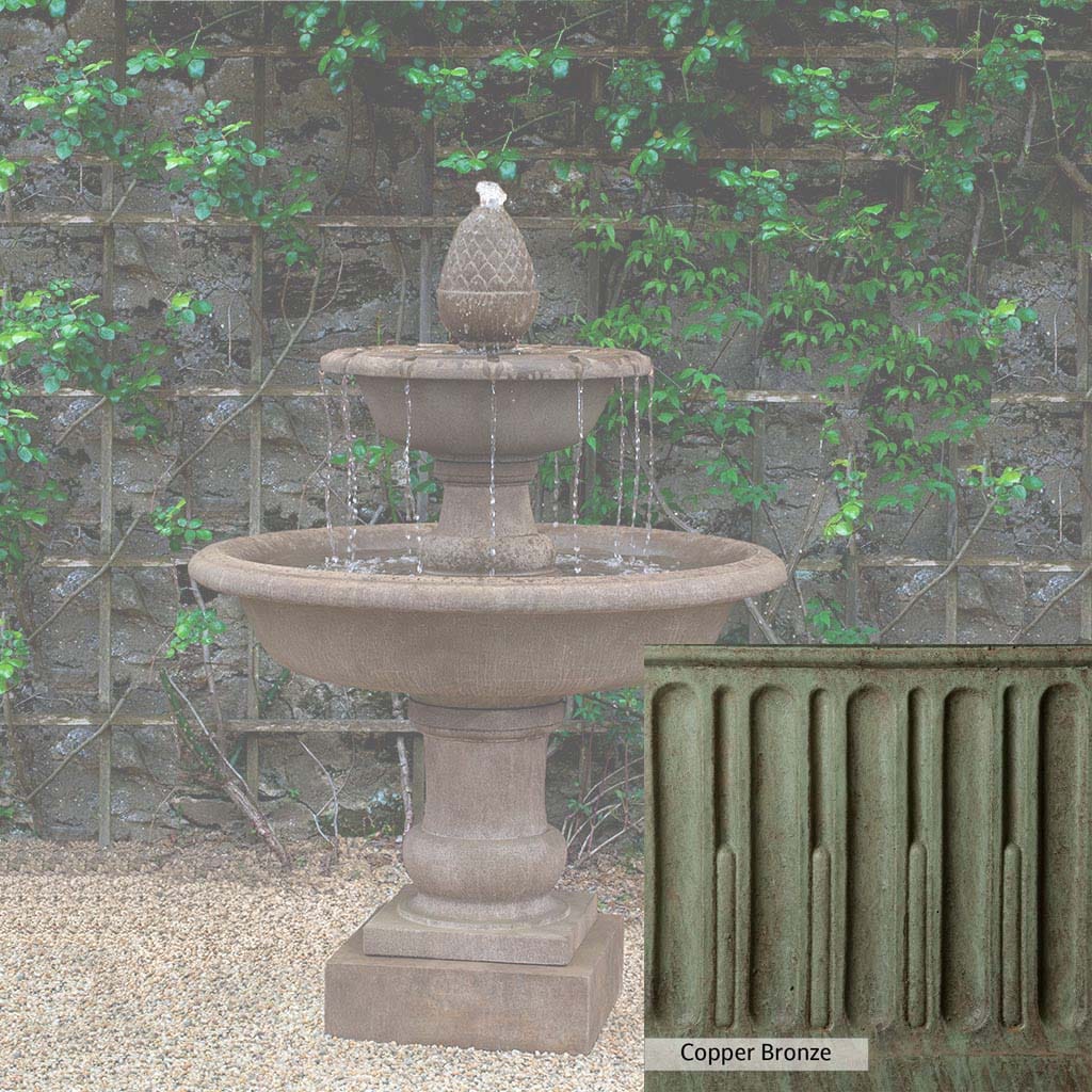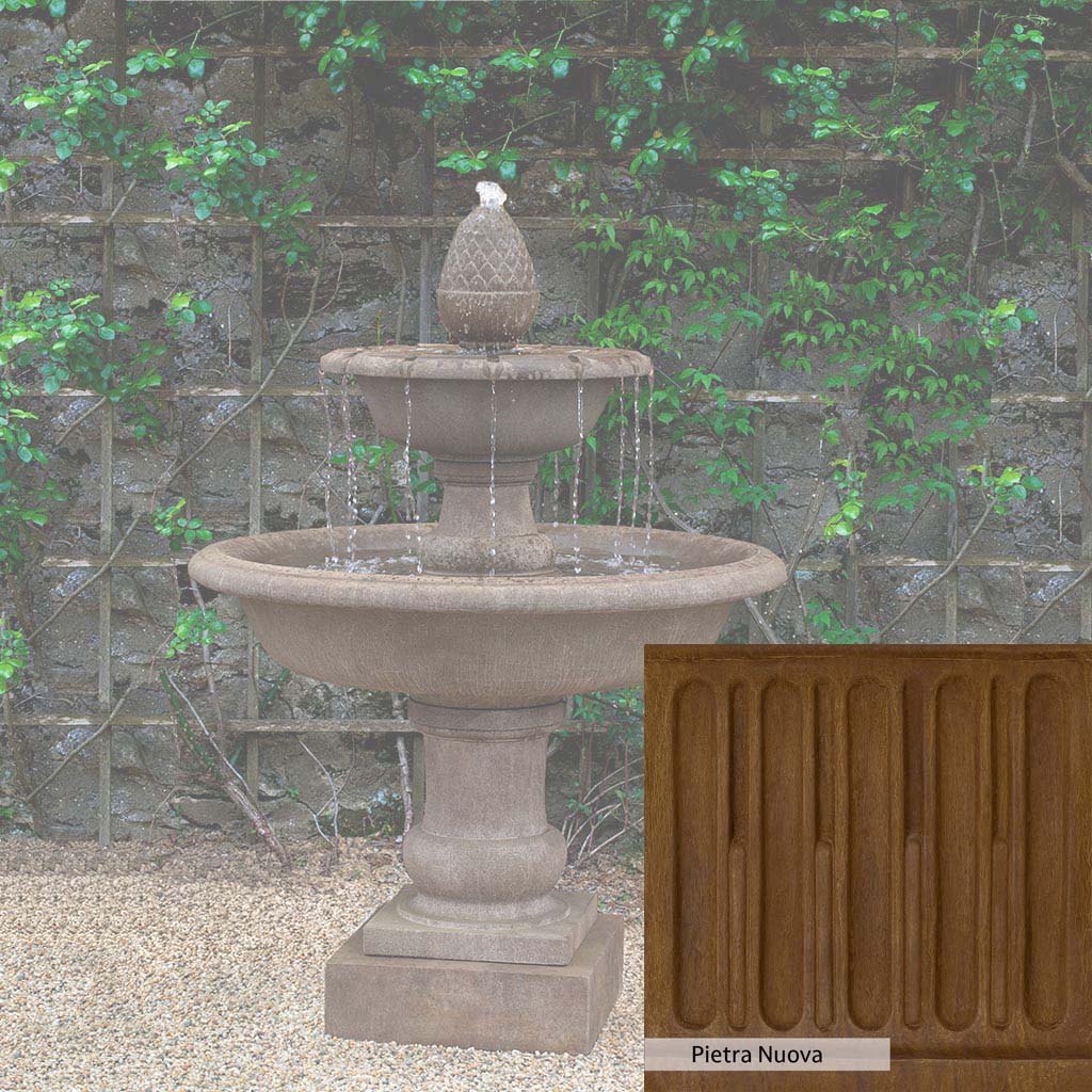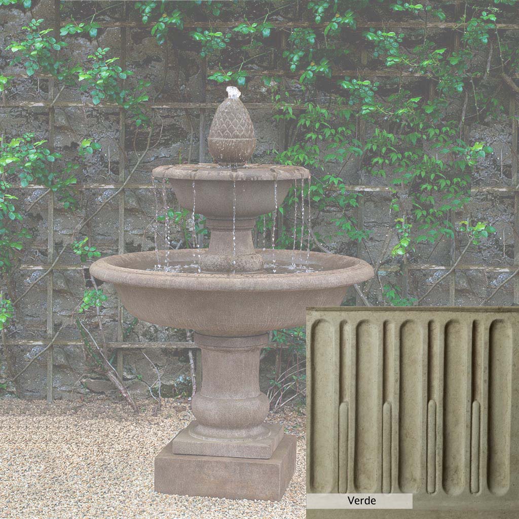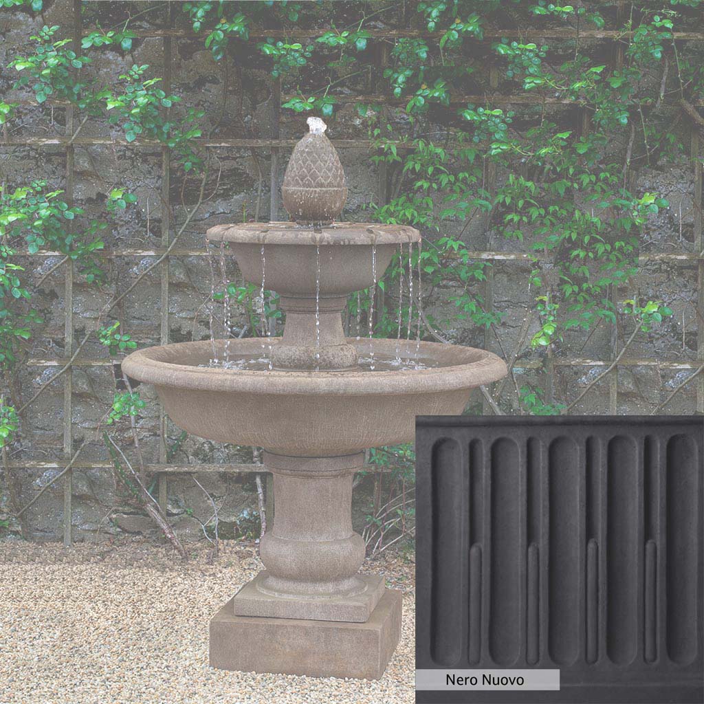 The Wiltshire Fountain is handcrafted by skilled artisans in the USA. The Campania team applies the unique patina with experienced hands, making each piece special. This fountain is featured in the Aged Limestone color. Campania International's exclusive cast stone blend is expertly molded to create each piece in the construction of this fountain. Due to the materials used and manufacturing processes, as well as variations in photography conditions, natural differences may occur in size, weight, and color. The actual color may vary from the photo.