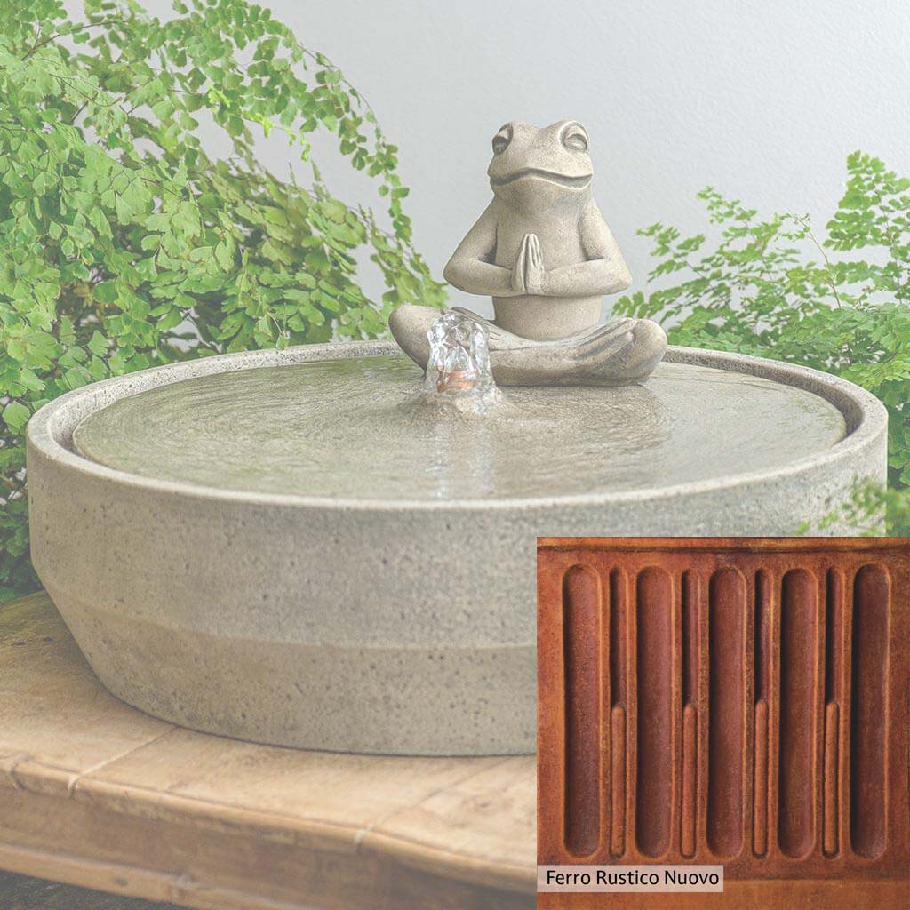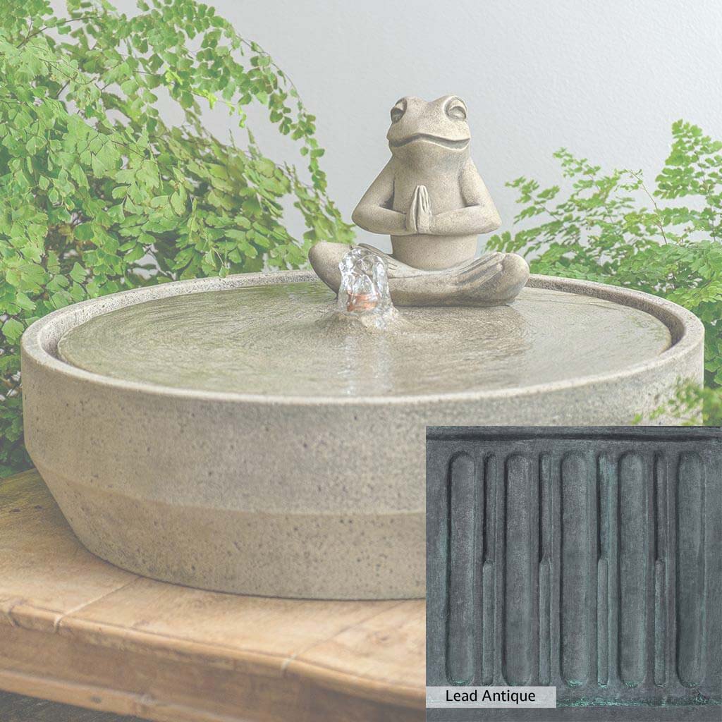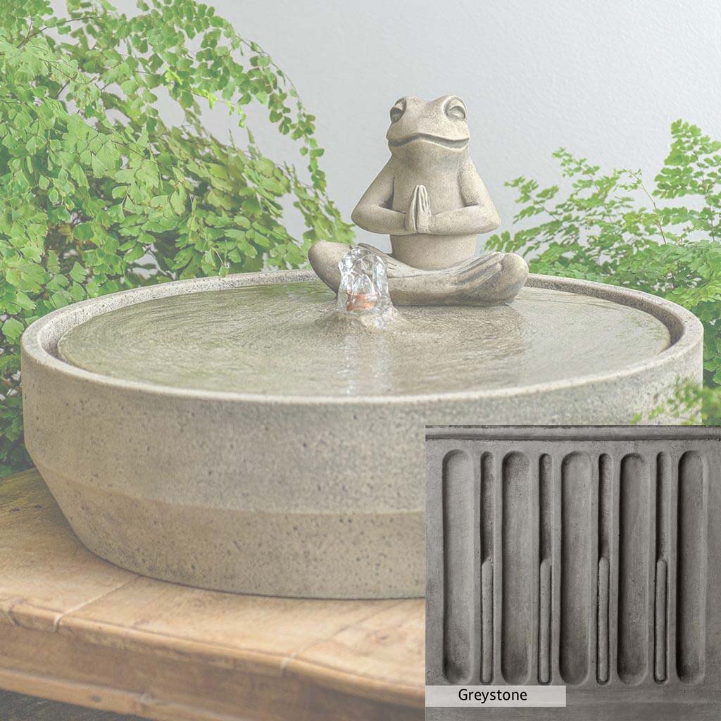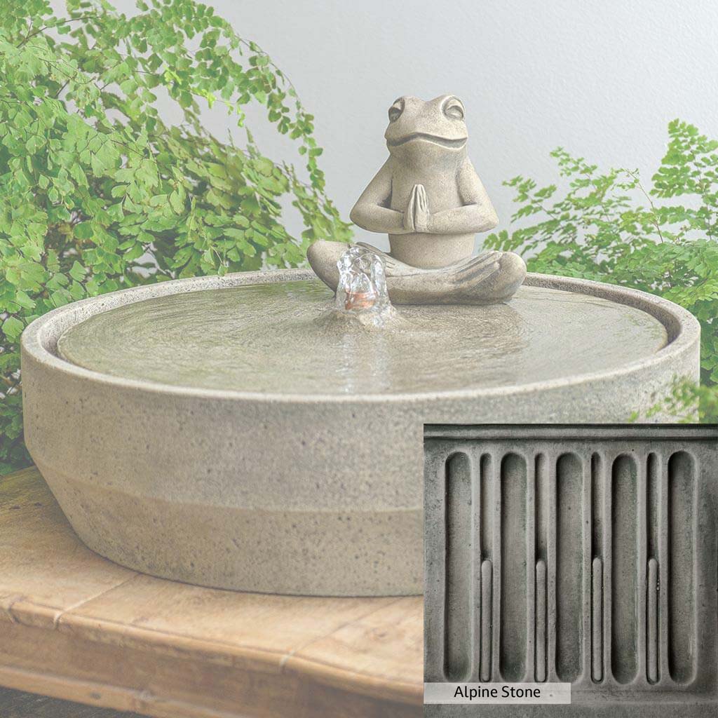 Skilled artisans in the USA handcraft the Yoga Frog Beveled Fountain. The Campania team applies the unique patina using their experience, making each piece one-of-a-kind. This fountain is shown in the Alpine Stone color. Campania International's unique cast stone blend is meticulously molded to create each piece used in the construction of this fountain. Due to the materials, manufacturing processes, and variations in photography conditions, natural differences can occur in size, weight, and color. The actual color may vary from the photo.