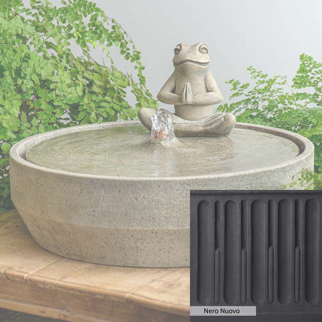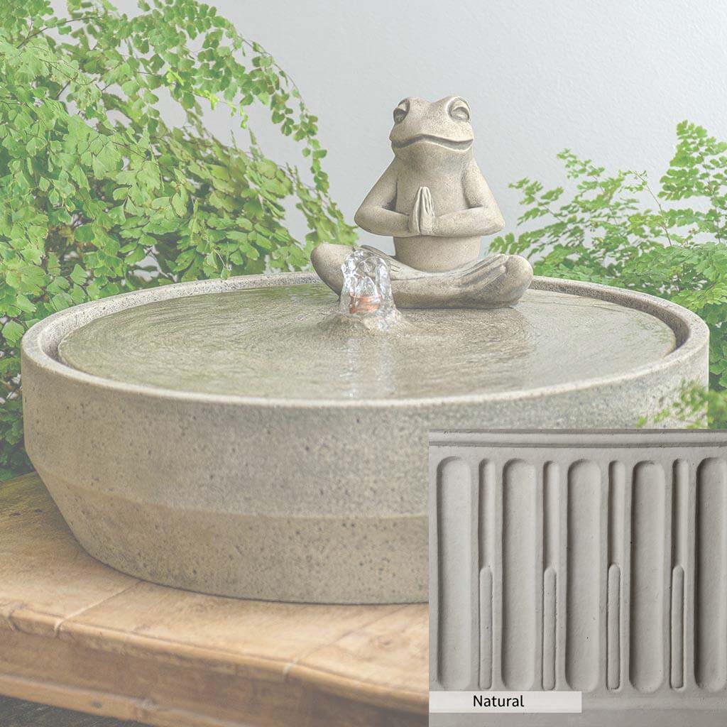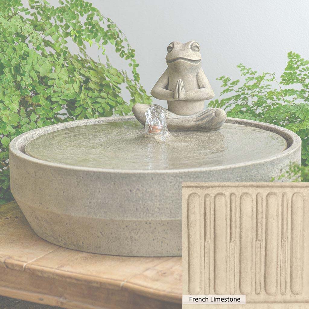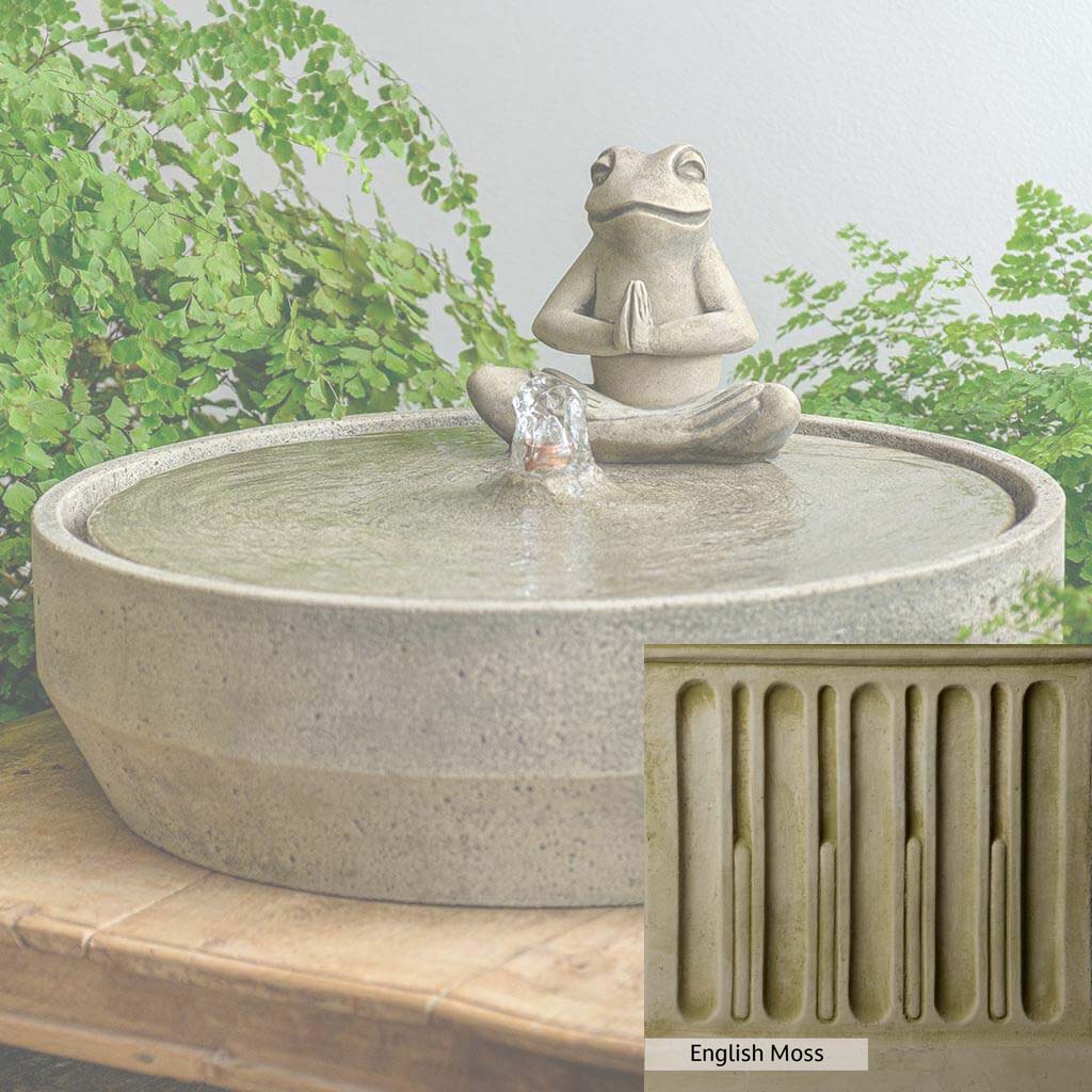 Skilled artisans in the USA handcraft the Yoga Frog Beveled Fountain. The Campania team applies the unique patina using their experience, making each piece one-of-a-kind. This fountain is shown in the Alpine Stone color. Campania International's unique cast stone blend is meticulously molded to create each piece used in the construction of this fountain. Due to the materials, manufacturing processes, and variations in photography conditions, natural differences can occur in size, weight, and color. The actual color may vary from the photo.