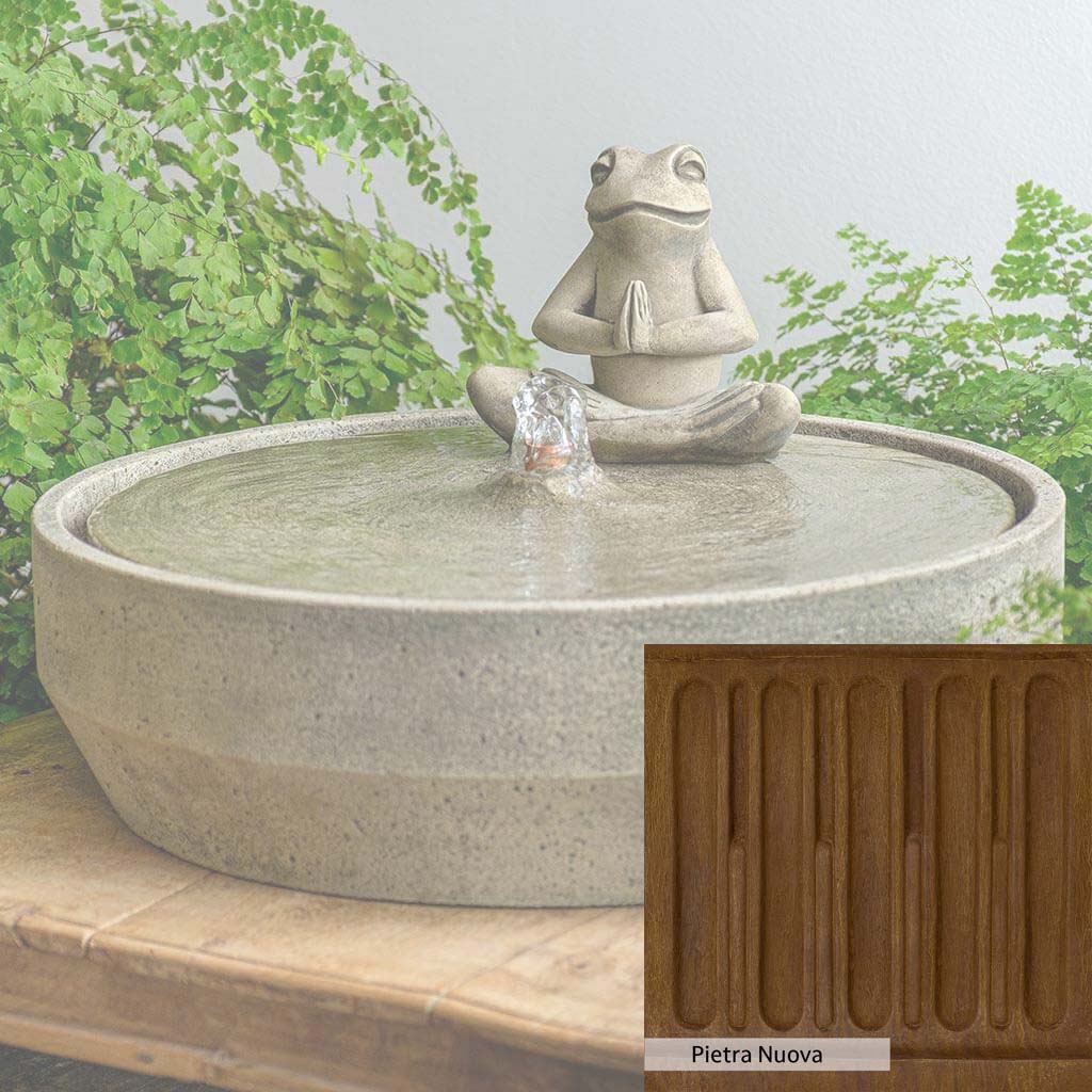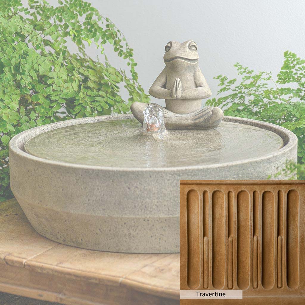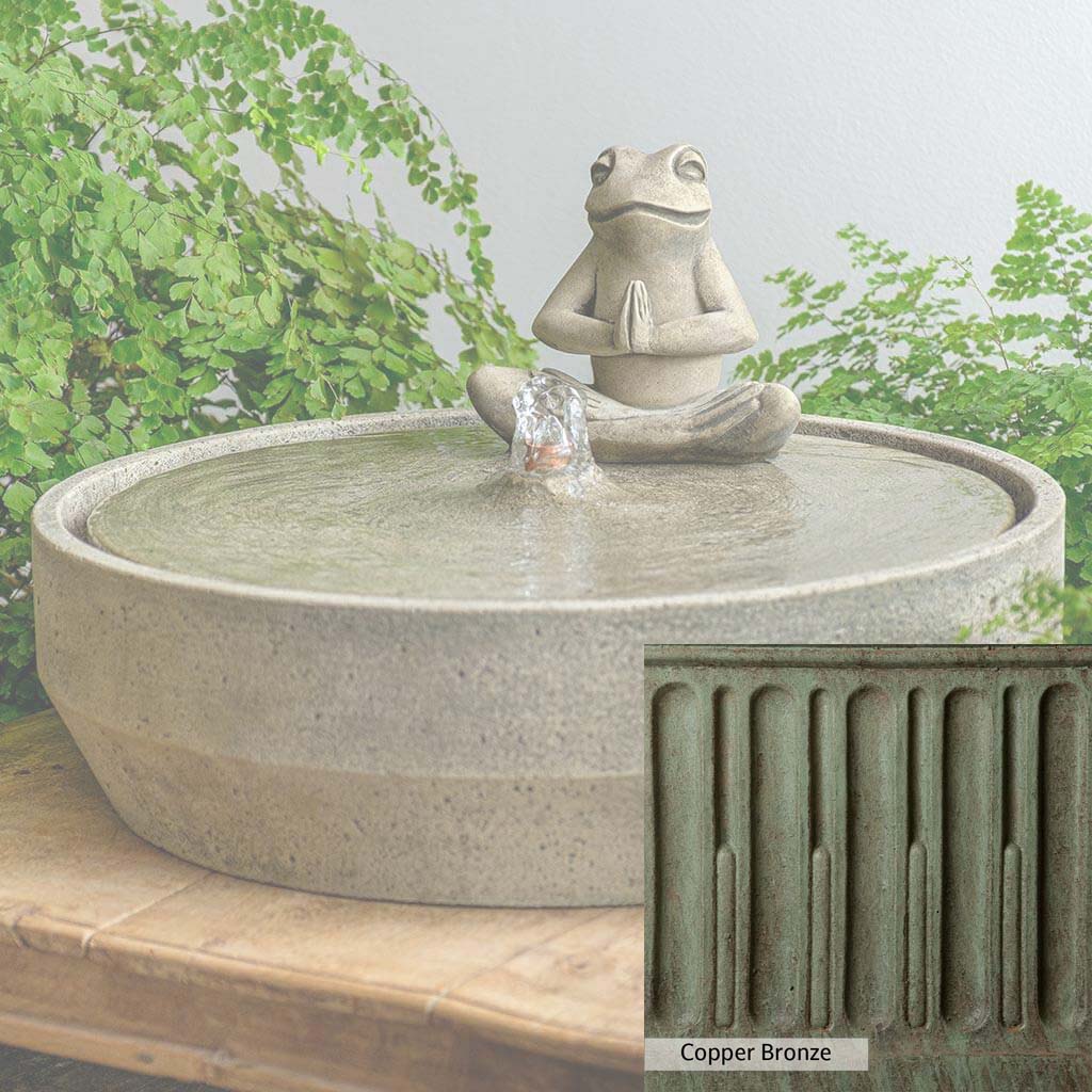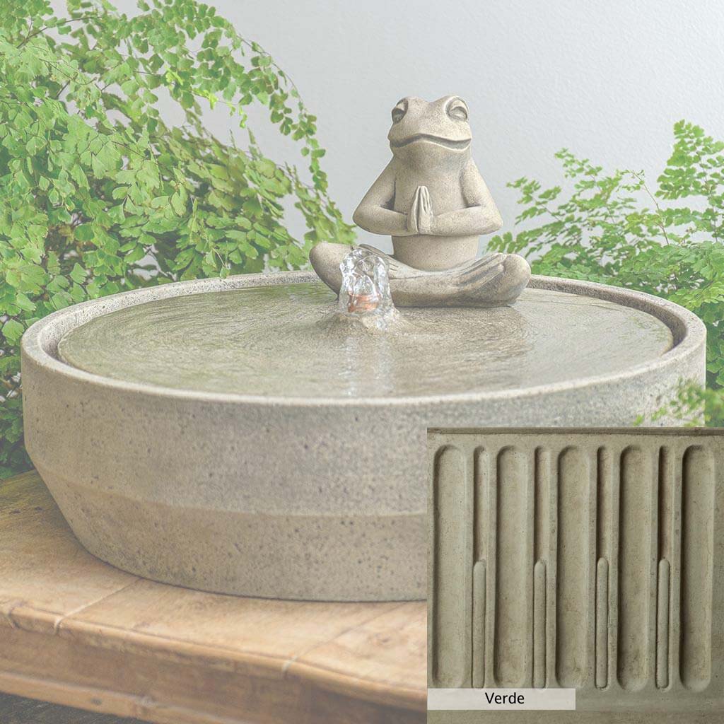Skilled artisans in the USA handcraft the Yoga Frog Beveled Fountain. The Campania team applies the unique patina using their experience, making each piece one-of-a-kind. This fountain is shown in the Alpine Stone color. Campania International's unique cast stone blend is meticulously molded to create each piece used in the construction of this fountain. Due to the materials, manufacturing processes, and variations in photography conditions, natural differences can occur in size, weight, and color. The actual color may vary from the photo.