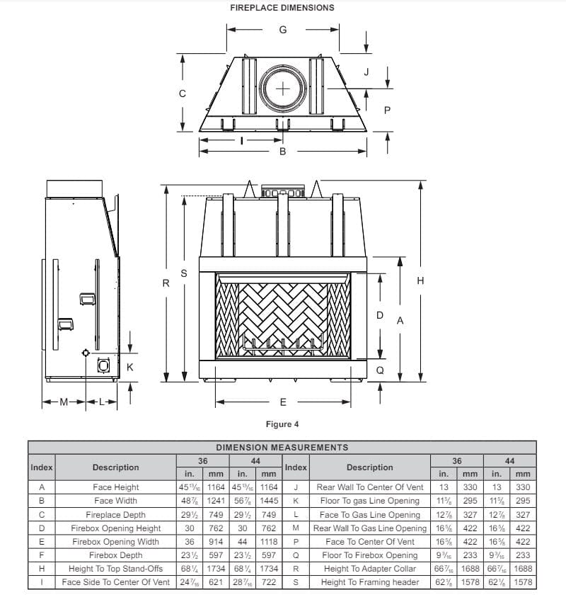 Empire Wood Burning Fireplace 36" Hamilton Firebox Only WBF36