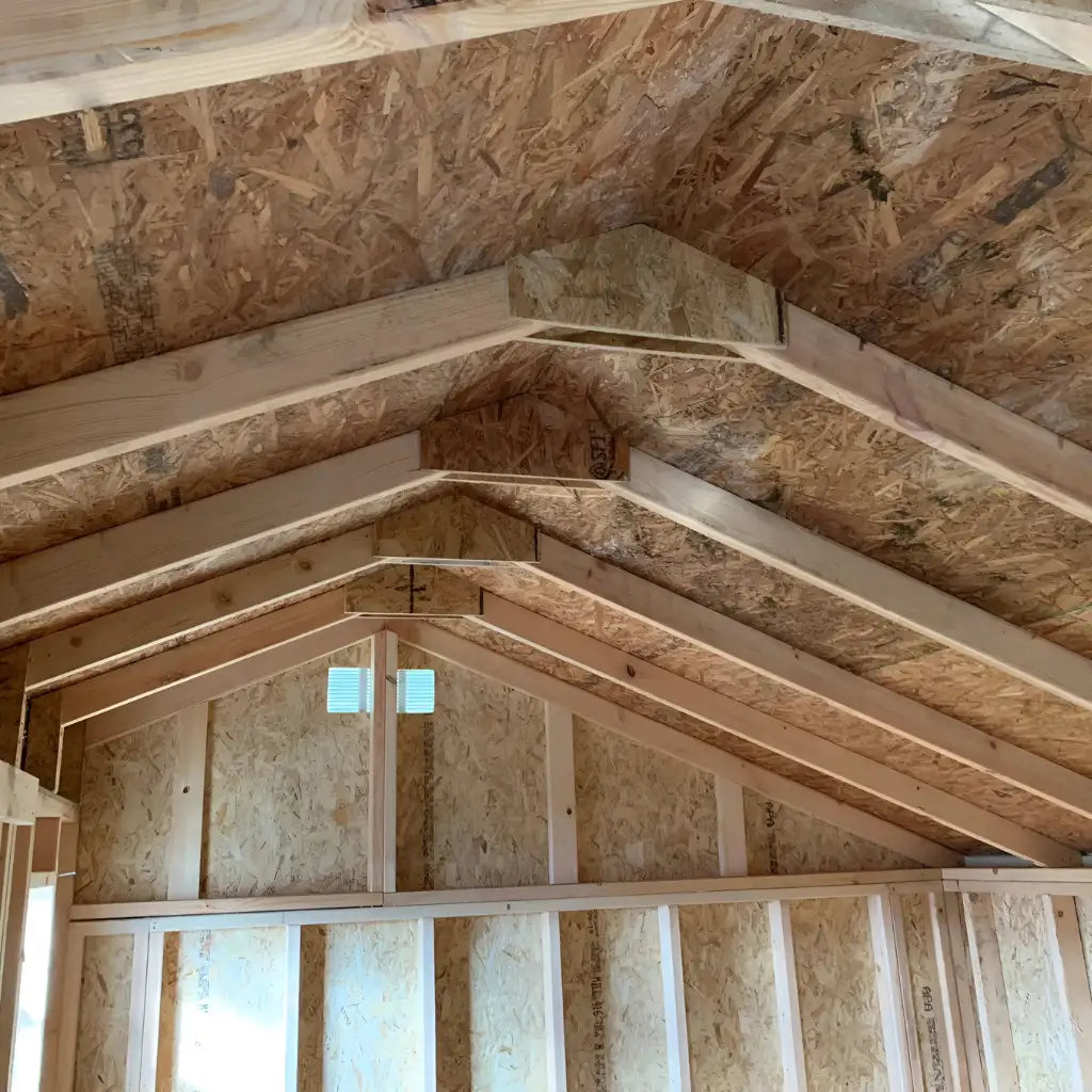 - The roof trusses are 2 x 4’s – 24″ on center with 7/16″ OSB