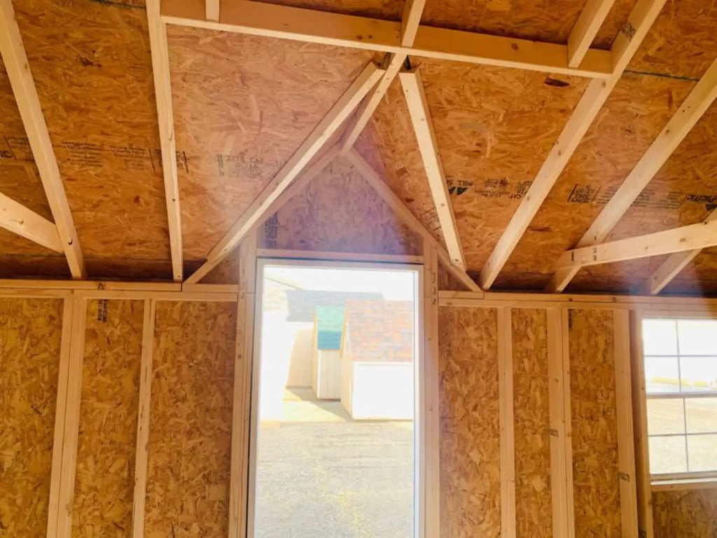 - The shed's roof is designed with a 5/12" pitch, providing better water runoff and adding to the shed's overall durability.