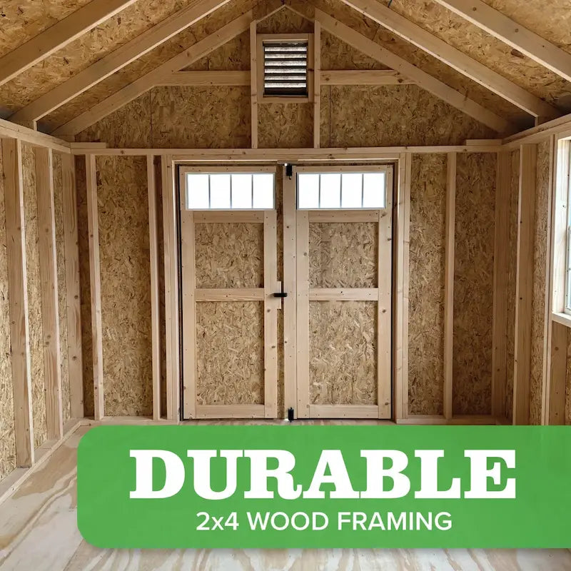 - The shed's roof is designed with a 5/12" pitch, providing better water runoff and adding to the shed's overall durability.