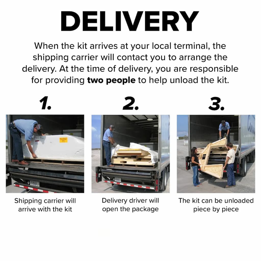 IMPORTANT NOTE: This product includes a complimentary liftgate service to safely lower the package from the truck to the ground upon delivery. The driver will unload the kit, which will then be placed curbside or at the end of the driveway. Please inspect the package for damage.