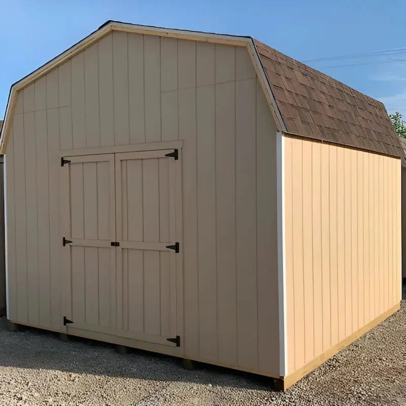 Upgrade your storage game with the Little Cottage Co. Value Gambrel Barn. Crafted by skilled artisans, this versatile barn features a unique roofline that provides ample headroom for storage and other purposes. It comes in 17 sizes ranging from cozy to spacious, so you can find the perfect fit for your backyard or home office needs. With 6-foot sidewalls and a classic double-door design, the Value Gambrel Barn is ideal for storing lawn tractors, equipment, or any other items. Plus, it looks great and complements any backyard decor.