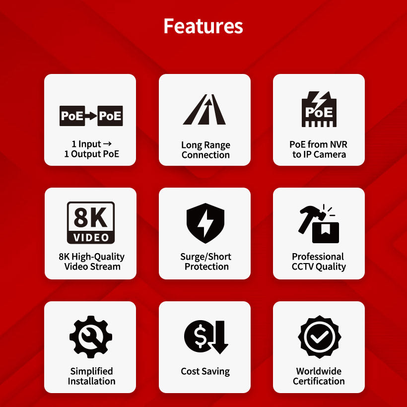 Compact yet rugged, the repeater supports extended-distance deployments by regenerating both power and signal, allowing PoE devices to be placed up to 600 ft (200 m) away from the network switch or PoE injector. Easy to install and compatible with a wide range of PoE standards, the repeater is an ideal solution for surveillance systems and networked devices where traditional PoE distance limits would otherwise constrain placement options.