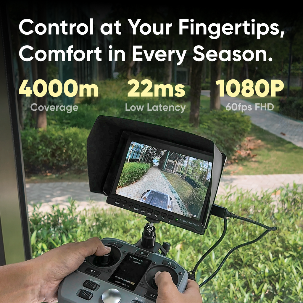 The Mowrator MowFun FPV system enhances your mowing experience by providing a real-time first-person video feed directly from your mower. Designed for the Mowrator S1 series, this FPV kit allows you to see exactly what the mower sees, making it easier to operate in complex areas, around obstacles, and in places where the mower may be out of direct line of sight. With a fast low-latency transmission system, the MowFun FPV kit offers a highly responsive and immersive remote-control experience.