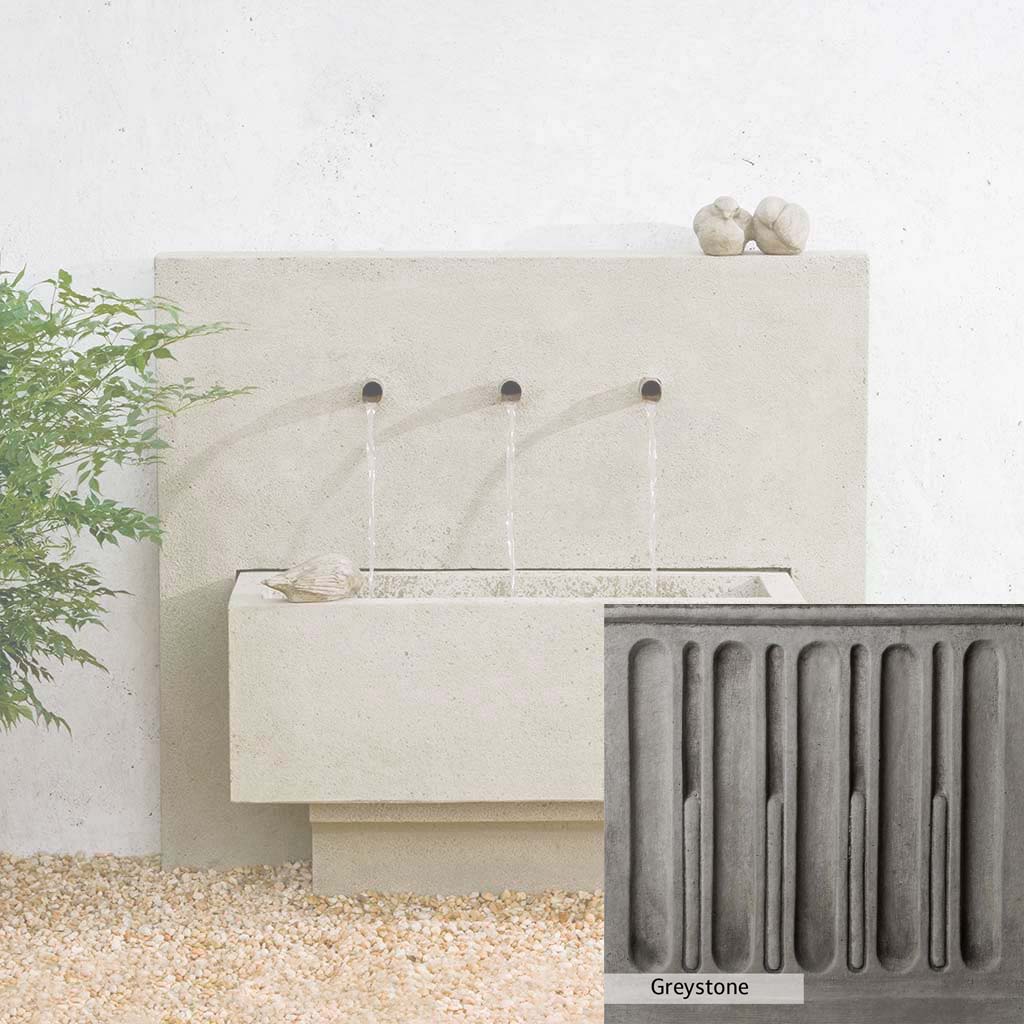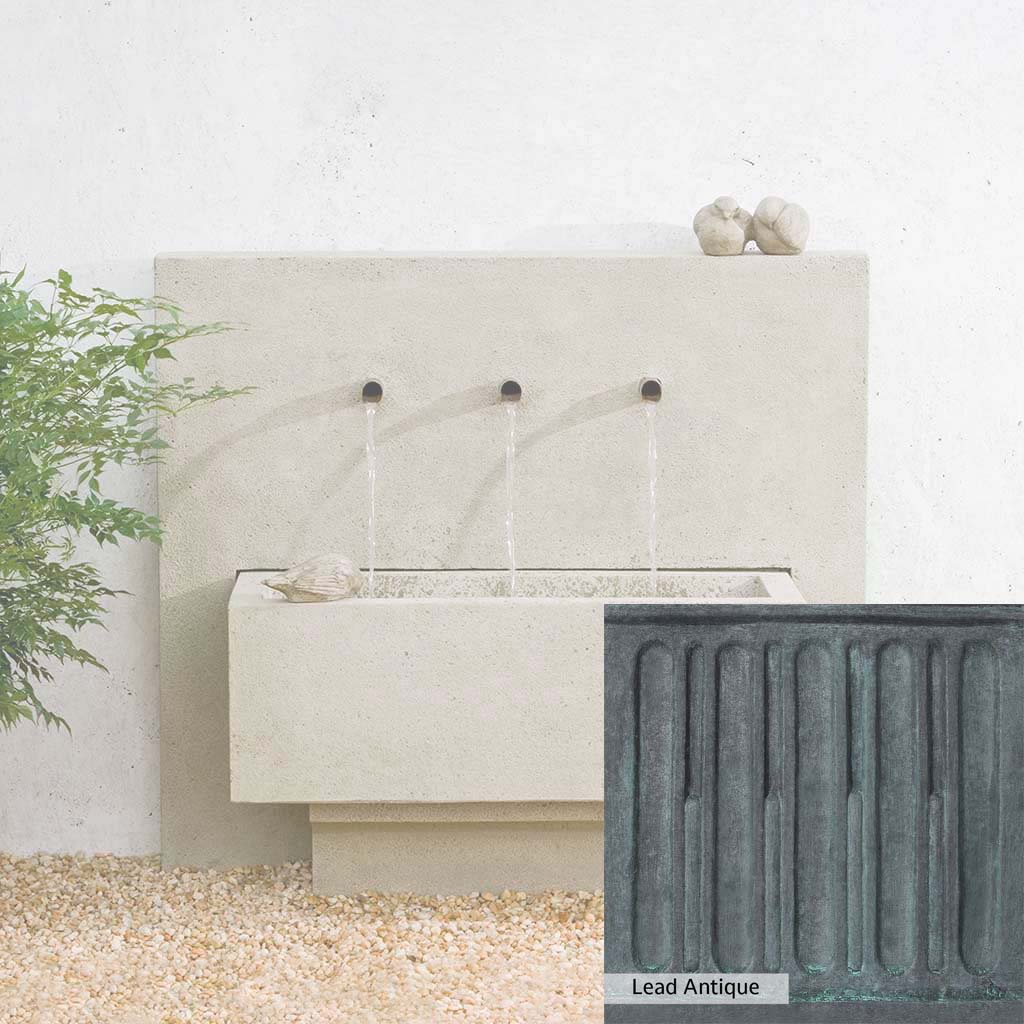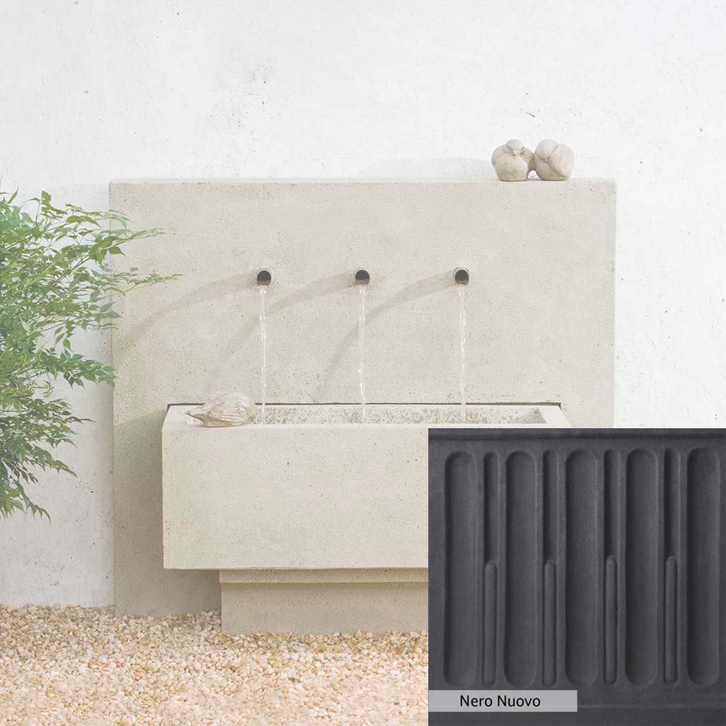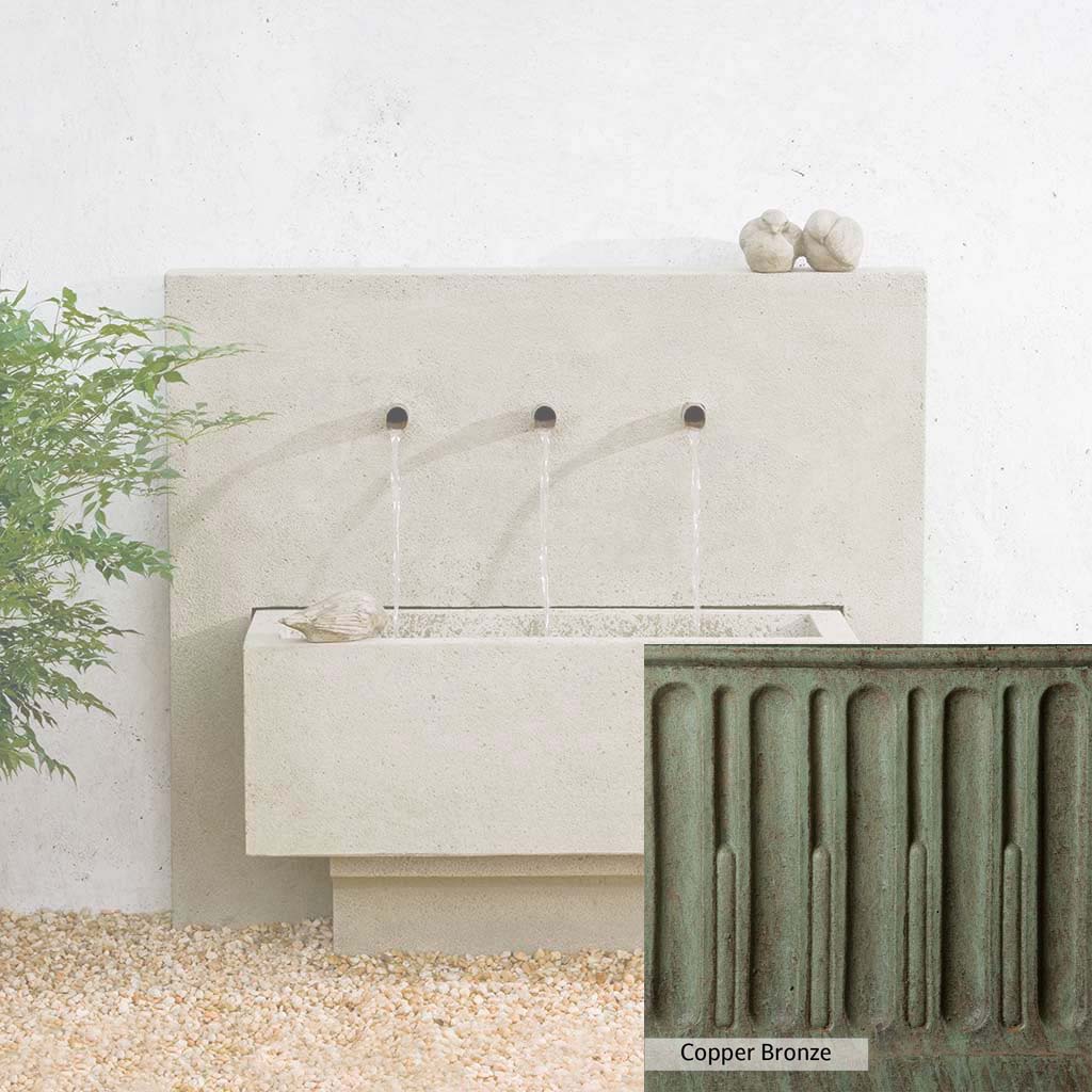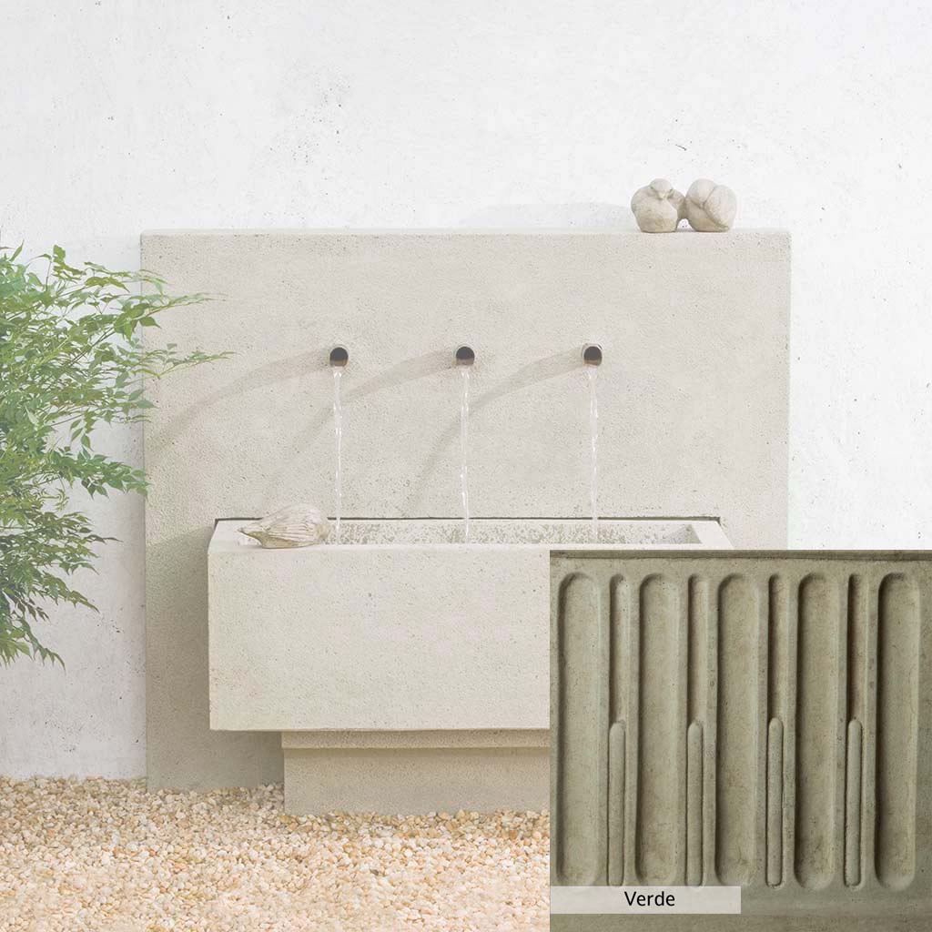 Skilled artisans in the USA handcraft the X3 Wall Fountain. With their extensive experience, the Campania team applies the unique patina, ensuring each piece is extraordinary. This fountain is shone in the Verdecolor. Campania International's proprietary cast stone blend is meticulously molded to create each piece used in the construction of this fountain. Due to the use of different materials and manufacturing processes, as well as varying photography conditions, natural variations in size, weight, and color can occur. The actual color may differ from the photo.