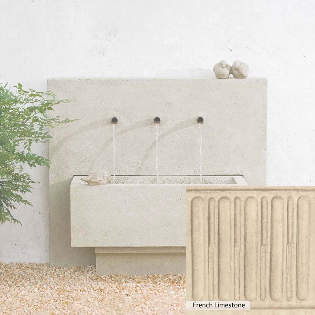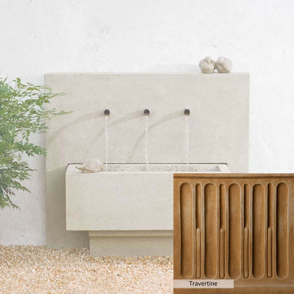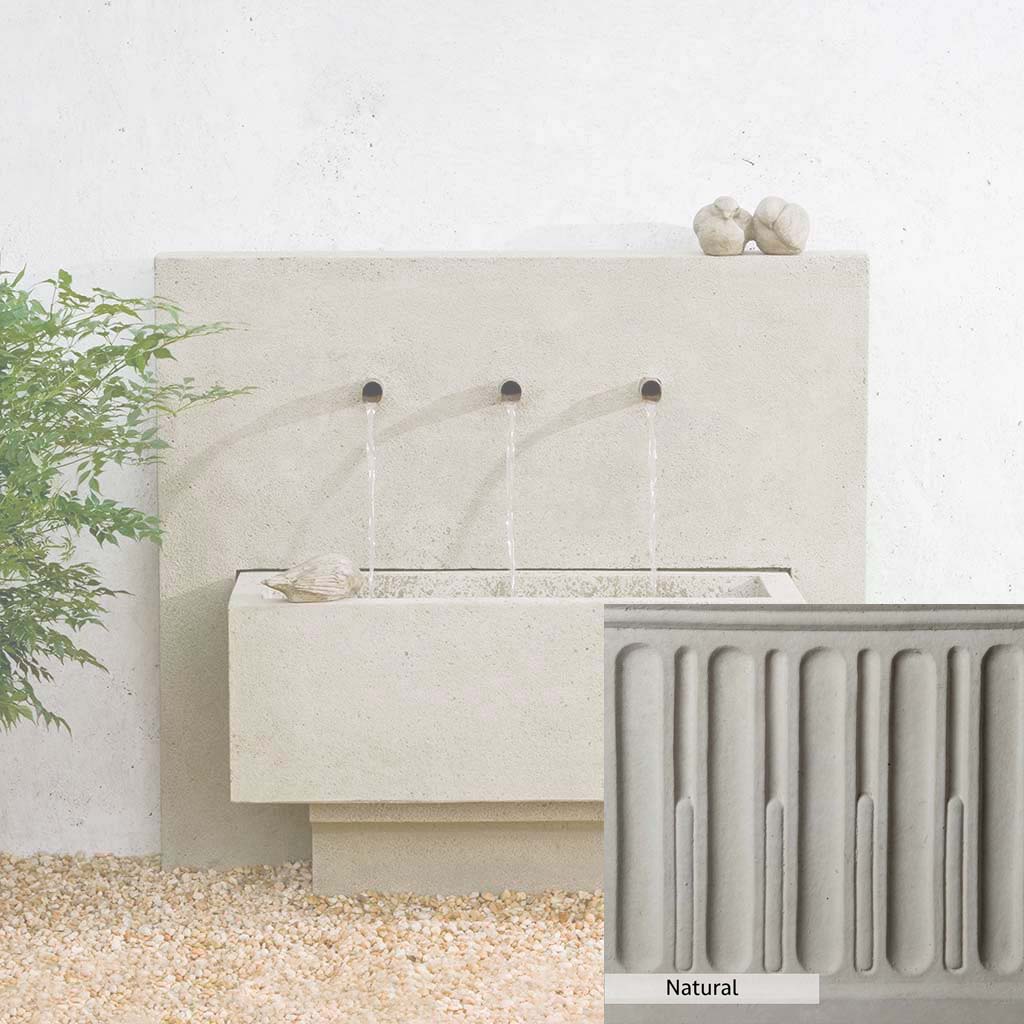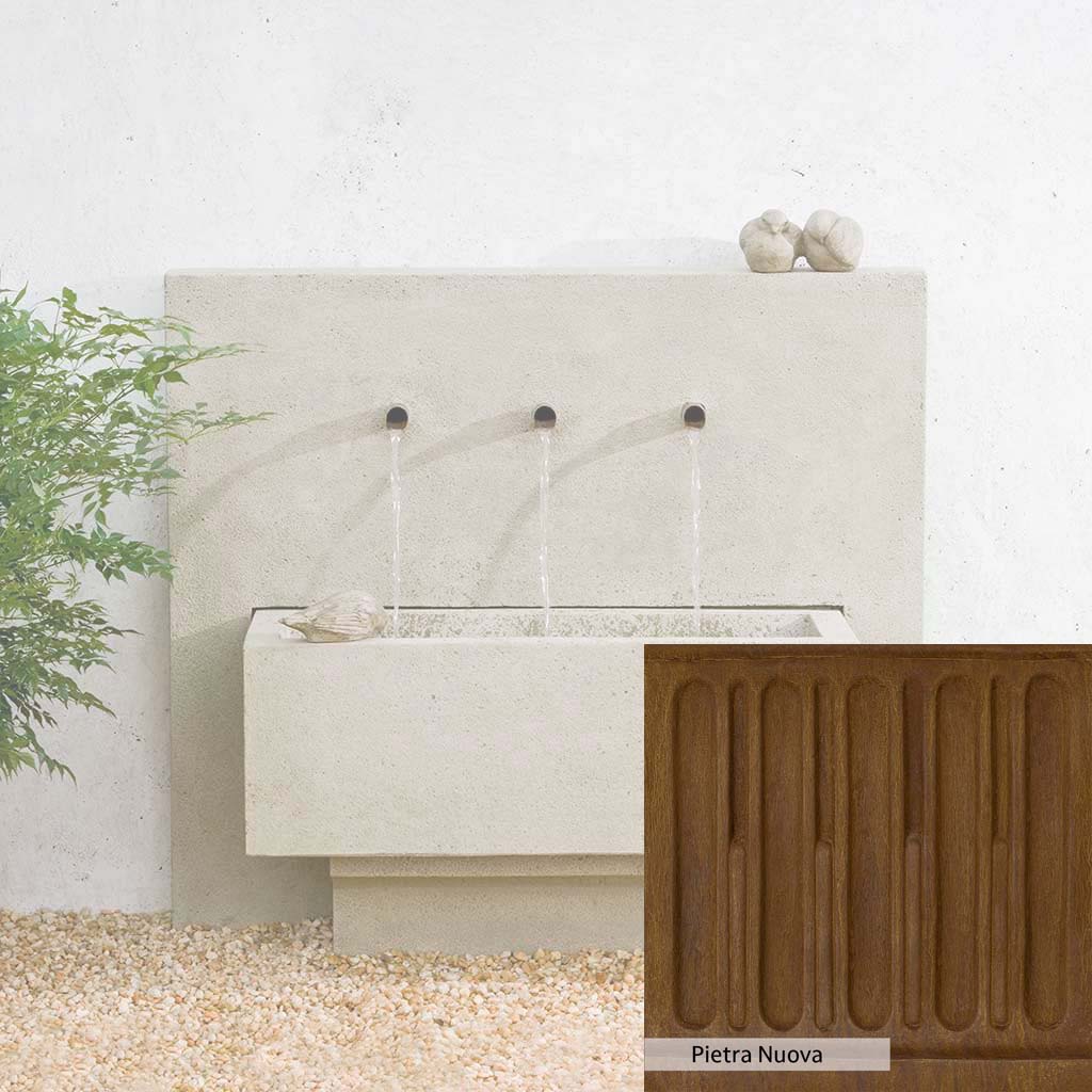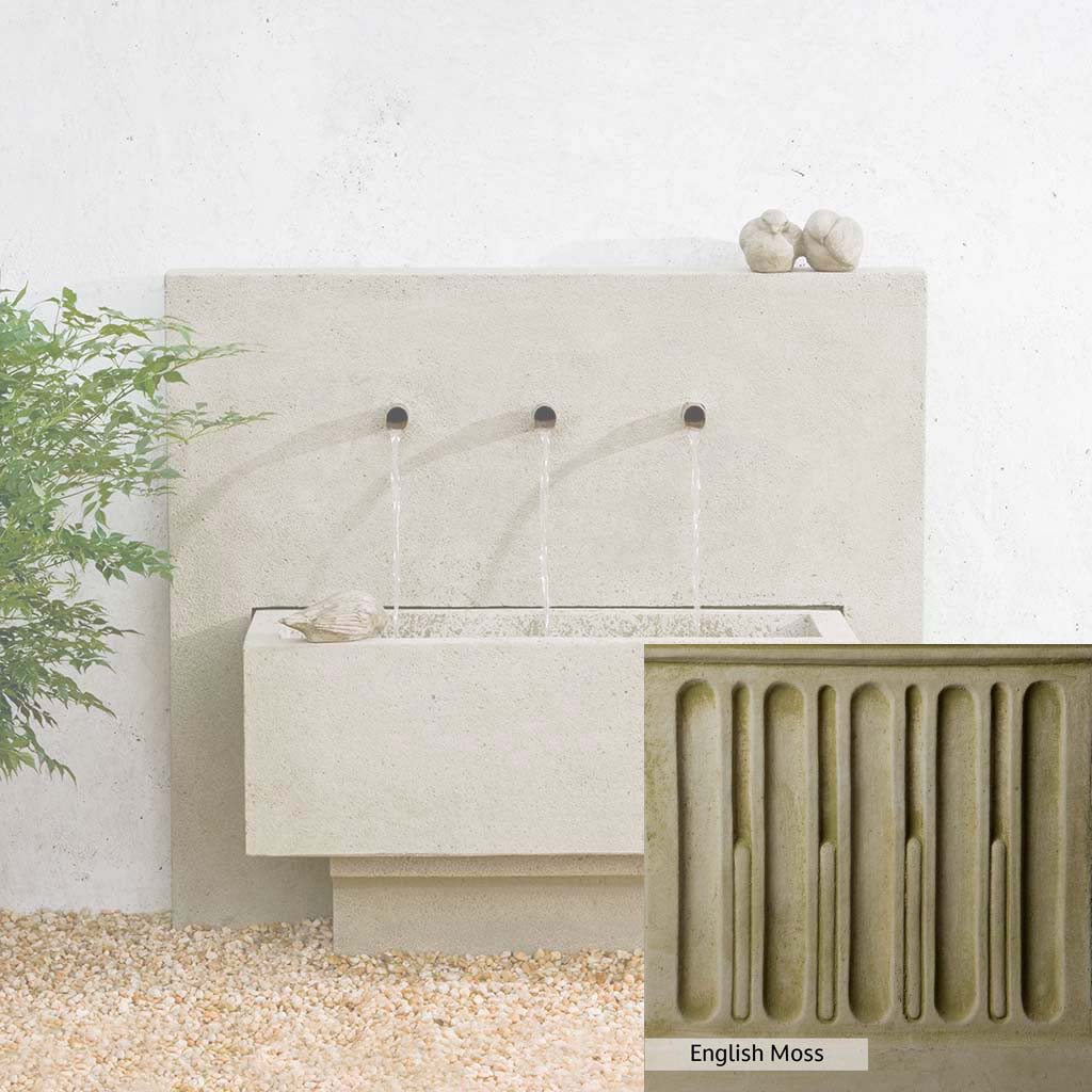 Skilled artisans in the USA handcraft the X3 Wall Fountain. With their extensive experience, the Campania team applies the unique patina, ensuring each piece is extraordinary. This fountain is shone in the Verdecolor. Campania International's proprietary cast stone blend is meticulously molded to create each piece used in the construction of this fountain. Due to the use of different materials and manufacturing processes, as well as varying photography conditions, natural variations in size, weight, and color can occur. The actual color may differ from the photo.